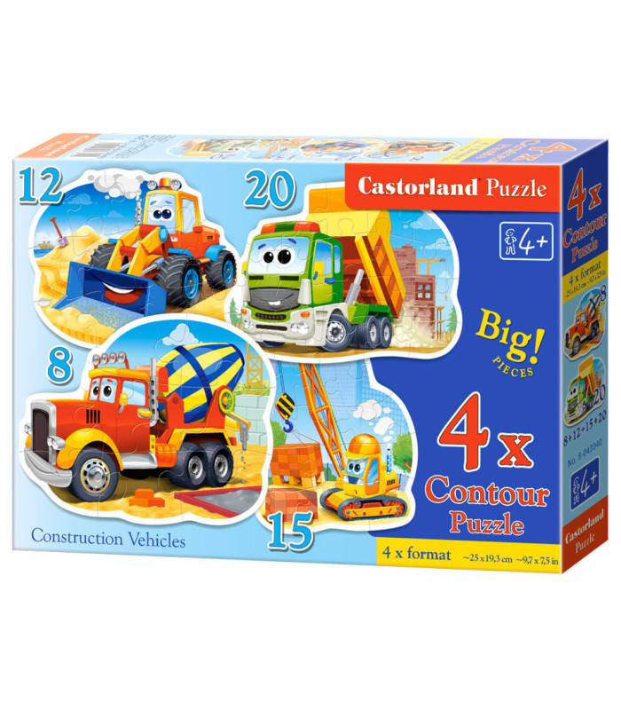Puzles 4w1 8,12,15,20-elementu Būvniecības Transportlīdzekļi