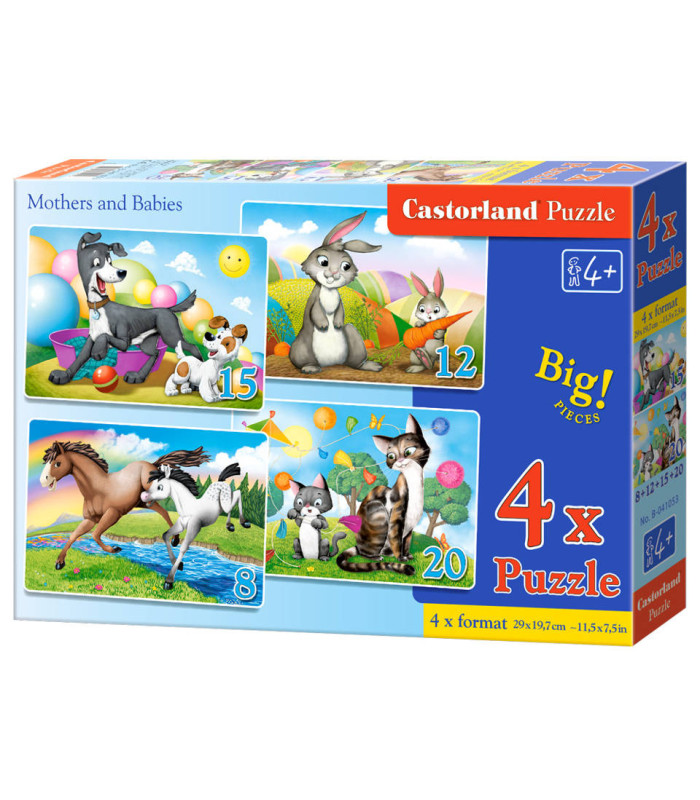 Rotaļlietu komplekts 4 x Kontūra 8+12+15+20 gabali ir paredzēts jaunākajiem bērniem, sastāv no četriem atsevišķiem attēliem ar dažādu grūtības pakāpi. Spilgtas krāsas, labi izvēlēts dizains un lieli elementi ļaus mazam bērnam viegli salikt katru attēlu. Šīs rotaļlietas aicina iepazīt aizraujošo pasaku, dzīvnieku un transportlīdzekļu pasauli. Attīsta asociāciju prasmi un palielina manuālo veiklību.