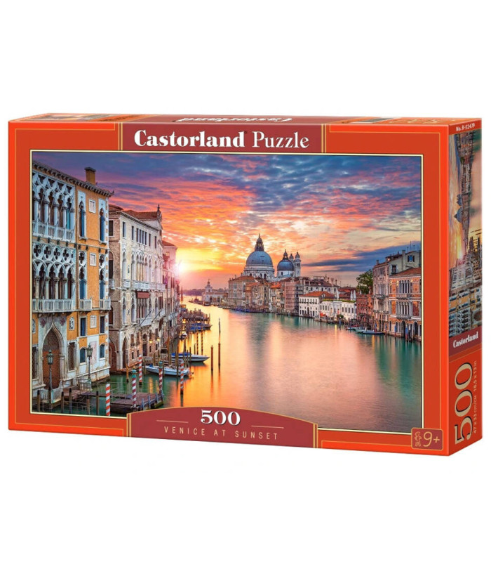 Puzzle 500 elementi Venēcija saulrietā piedāvā burvīgu attēlu salikšanu, kas piesaista cilvēkus, kuriem patīk veidot skaistus attēlus.