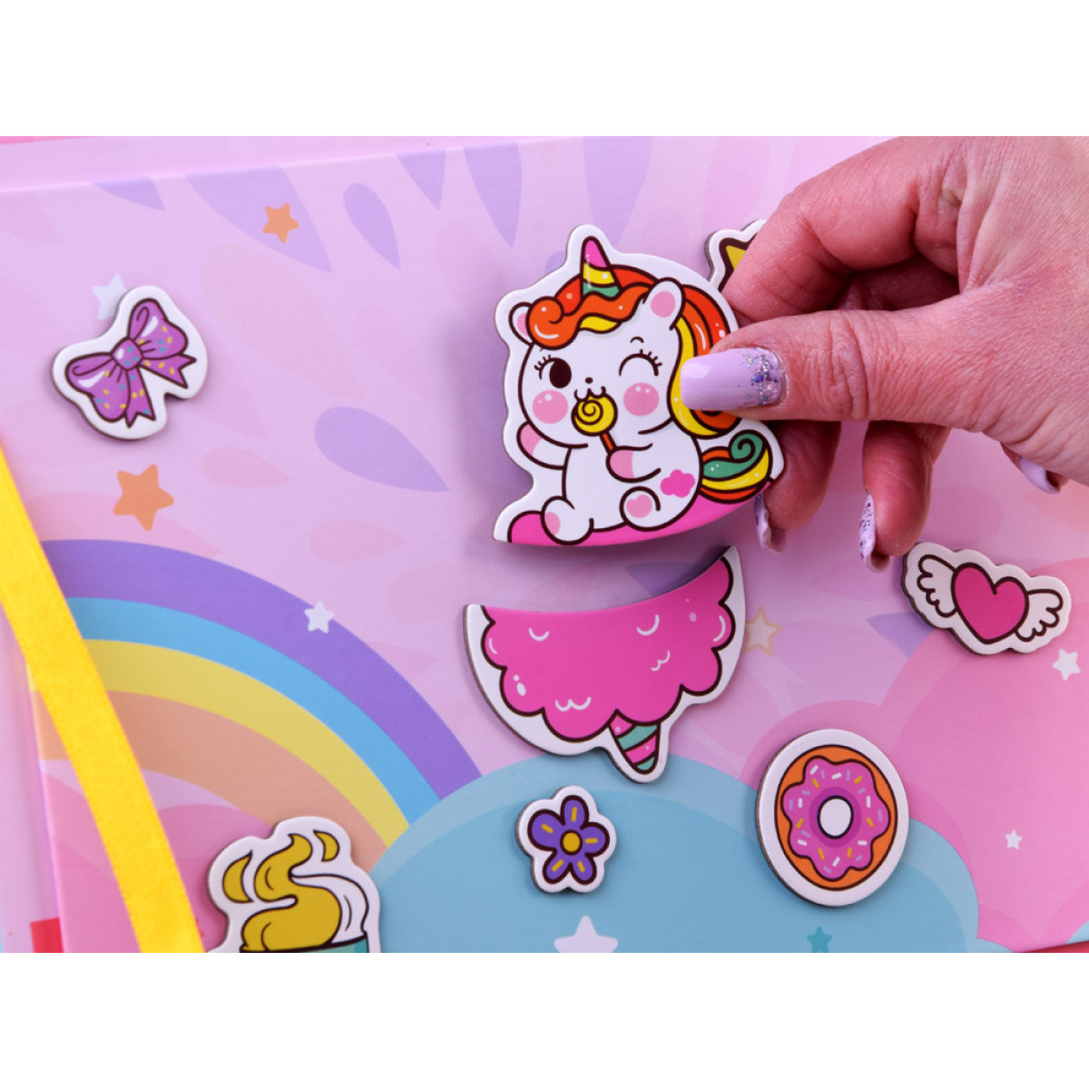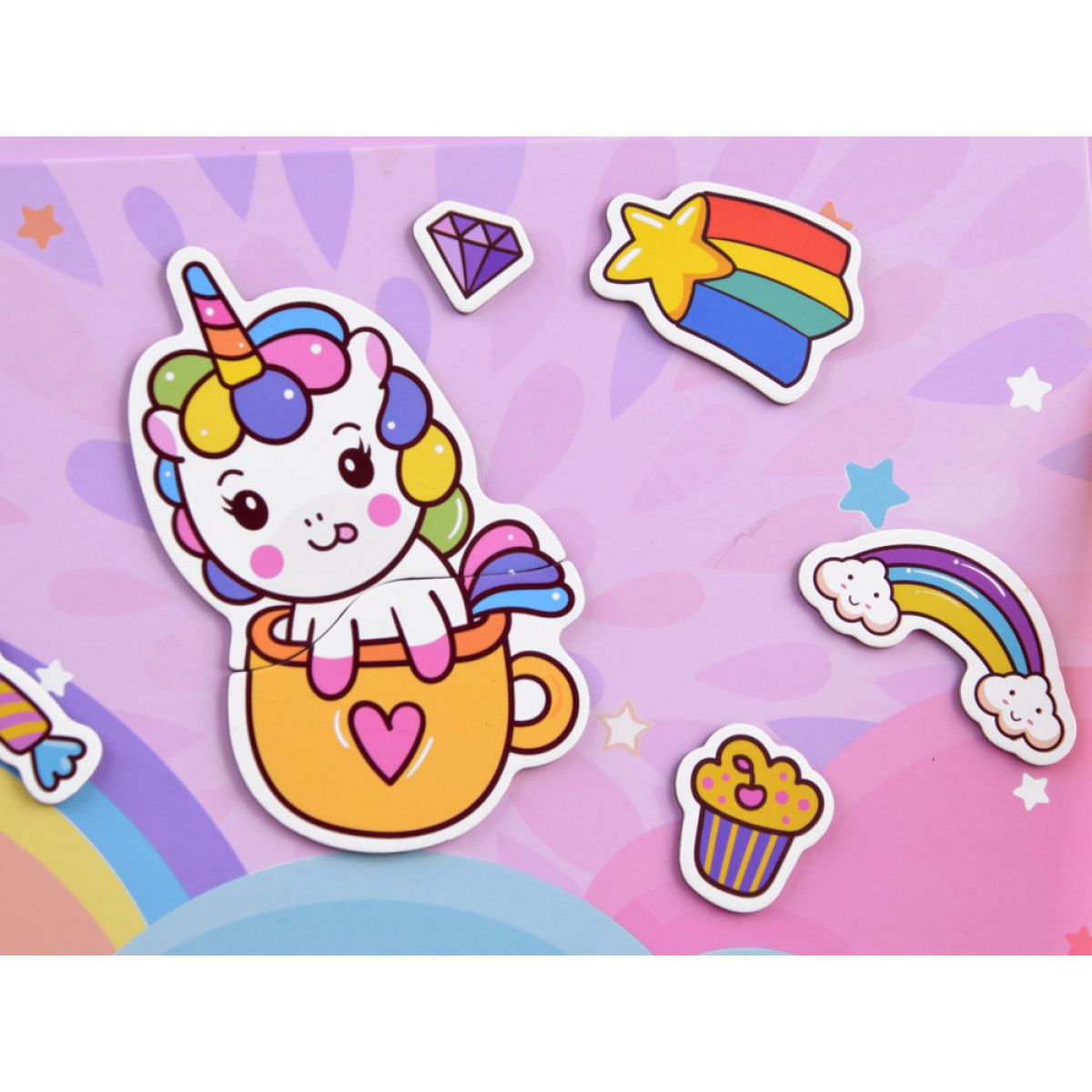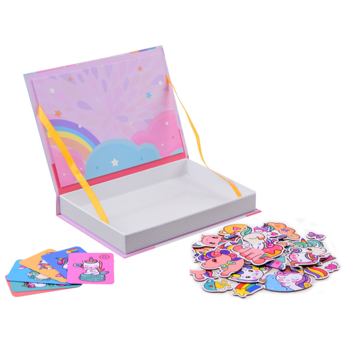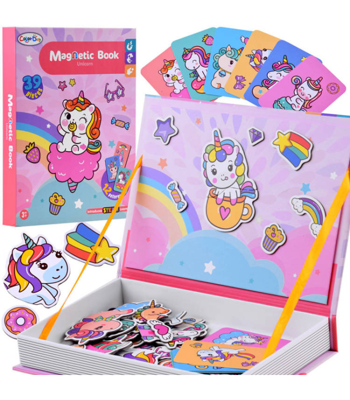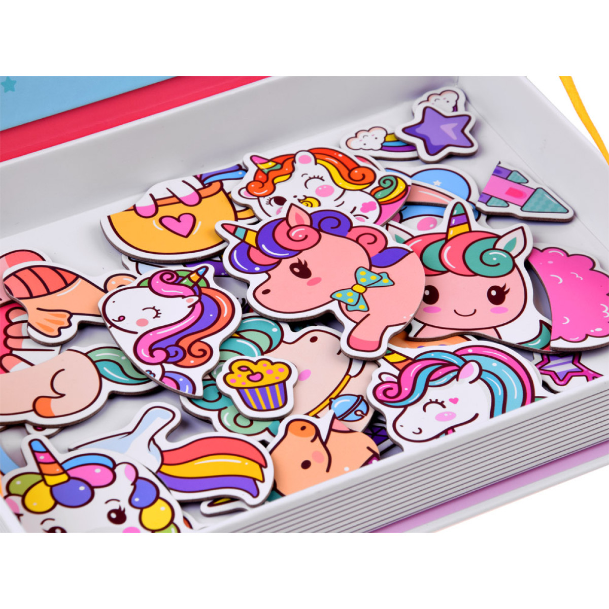 Brīnumainā puzle ir komplekts, kas sastāv no 39 vienradžu tēmas elementiem. Magnētiskā puzle ar vienradzi ir lieliska izklaide bērniem, kuriem patīk rotaļas ar pasaku varoņiem. Komplektā ir krāsaini magnēti, kas tiek novietoti uz magnētiskās tāfeles, tāpēc rotaļas ir iespējamas pat ceļojuma laikā. Magnētiskā puzle ir rotaļlieta, kas attīsta radošumu un iztēli. Puzle piedāvā daudzas iespējas radīt, trenē loģisko domāšanu un bērna manuālo veiklību.