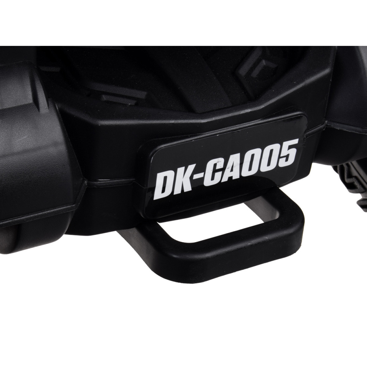 Modelis ir bagātīgi aprīkots ar LED paneli ar mūziku, USB ieeju, efektīviem LED lukturiem priekšā un aizmugurē, kā arī mīkstu divvietīgu sēdekli ar ekoloģisko ādu un drošības jostām. Ergonomiska stūre ar aizsargiem garantē ērtu un drošu vadīšanu. Šis komfortablais kvadracikls apmierinās katra mazā vadītāja vēlmes, piedāvājot neaizmirstamus brīžus svaigā gaisā.