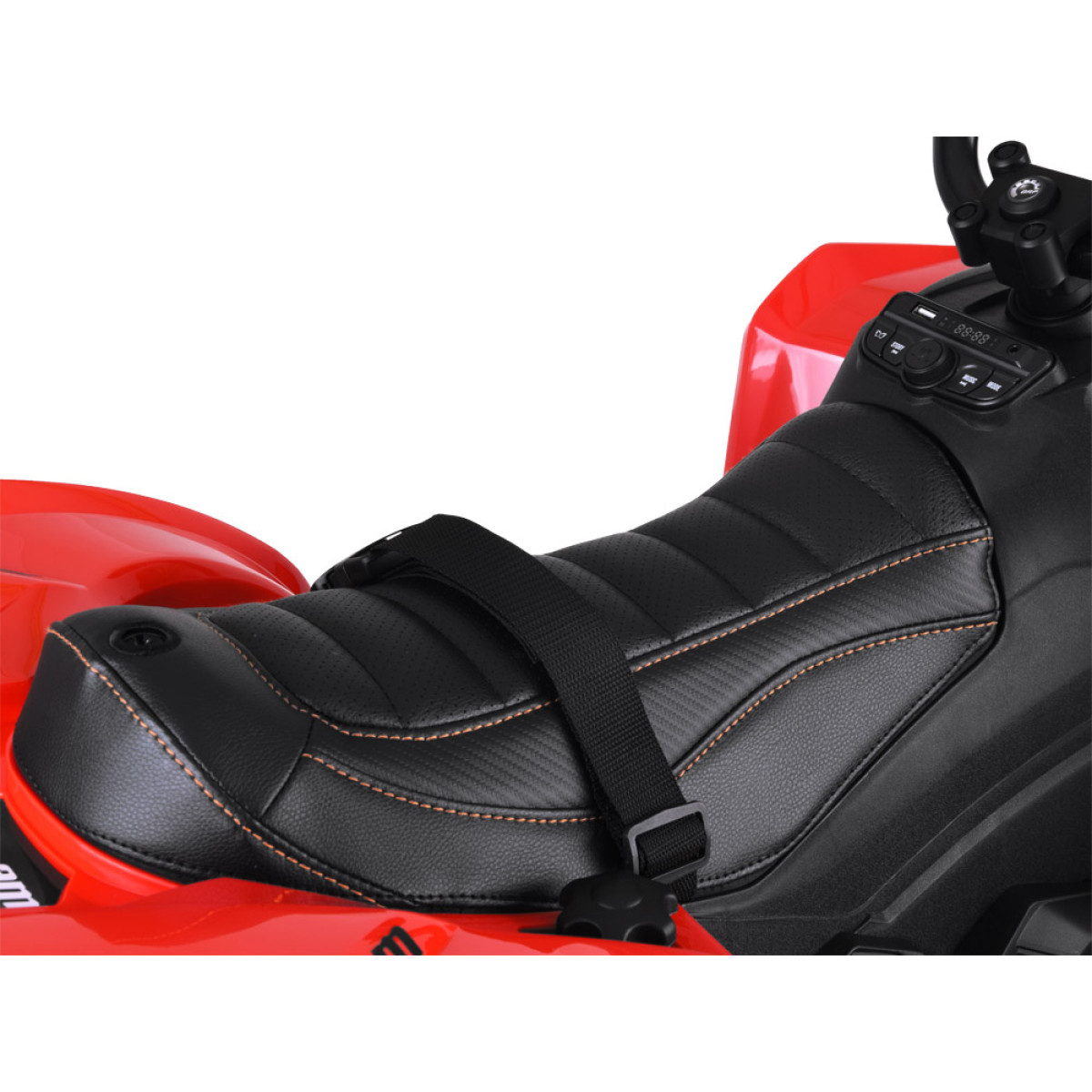 uz paneļa atrodas slēdzis braukšanai uz priekšu, apstāšanai un atpakaļgaitai, kā arī gaismu ieslēgšanas un izslēgšanas poga. priekšējās un aizmugurējās gaismas var ieslēgt jebkurā brīdī. kvadraciklam ir arī mūzikas panelis ar iebūvētām melodijām, usb, mp3 un fm radio.