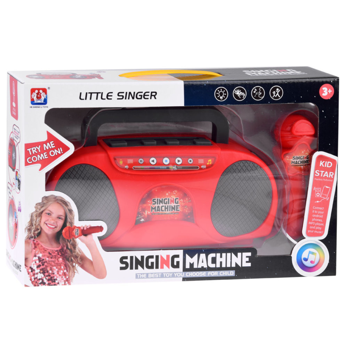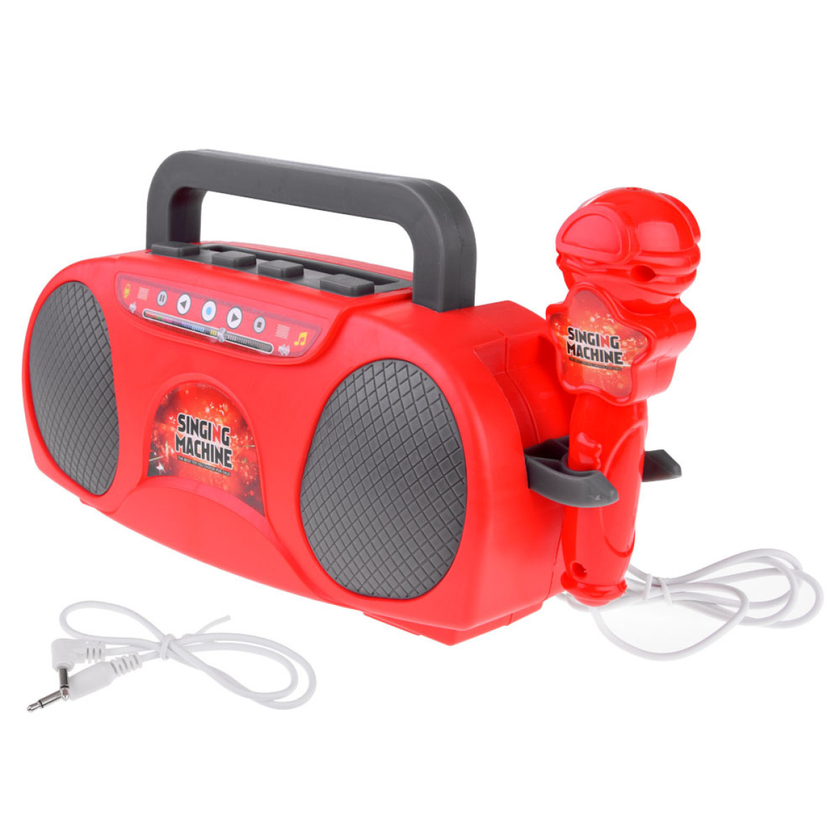 Bezvadu radio ar skaļruni un mikrofonu ir lielisks aksesuārs bērniem. Rotaļlieta mirgo ar gaismām, un, pievienojot mikrofonu, pastiprina balss skaņu. Tai ir arī otrs ieeja, kurai var pievienot MP3 atskaņotāju, lai atskaņotu iemīļoto mūziku, izmantojot komplektā iekļauto kabeli. Pievienojot ierīci, tā atskaņos mūziku tāpat kā bezvadu skaļrunis. Radio ir ērts rokturis pārnēsāšanai un 2 mikrofonu turētāji (aizmugurē un sānos). Bezvadu radio ar skaļruņiem ir lielisks, ja vēlaties rīkot karaoke ballīti, un tas var kļūt par galveno atrakciju jebkurā bērnu svinībā. Radio darbojas ar 3 x AA baterijām, tāpēc to var viegli ņemt līdzi pie drauga vai uz dārzu un sarīkot fantastisku diskotēku.