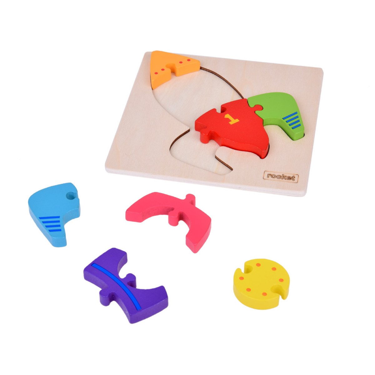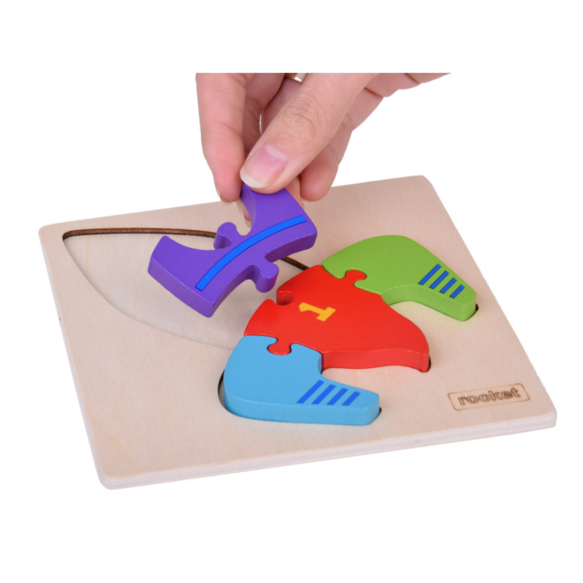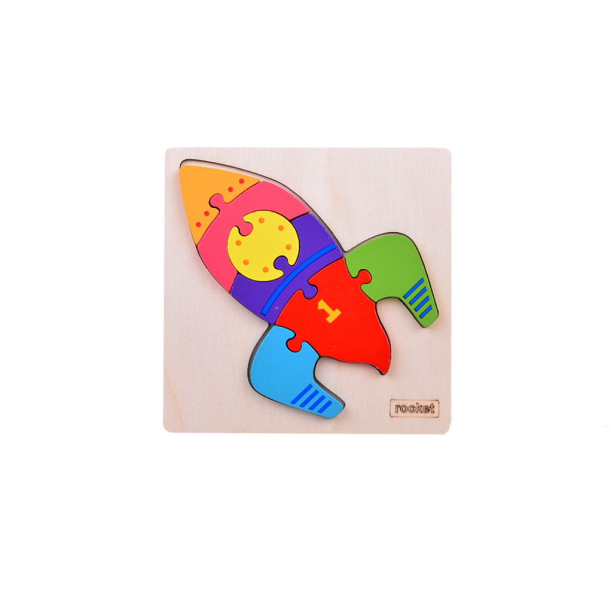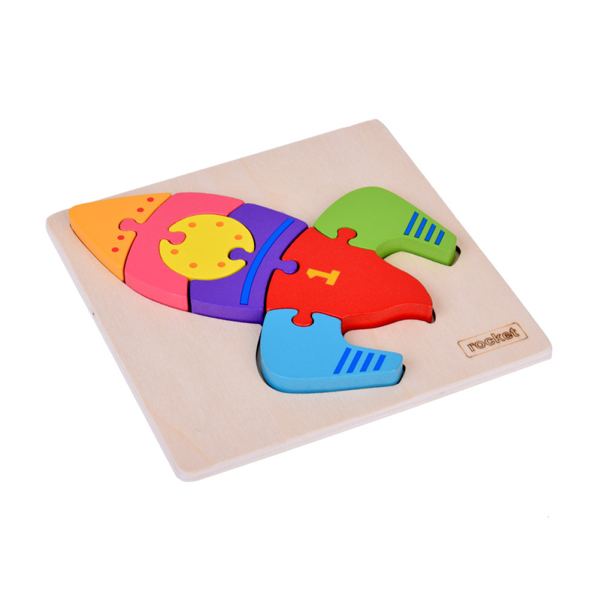 Koka 3D Pužļu Rakešu Rotaļlieta – Montessori Sensorā Rotaļlieta