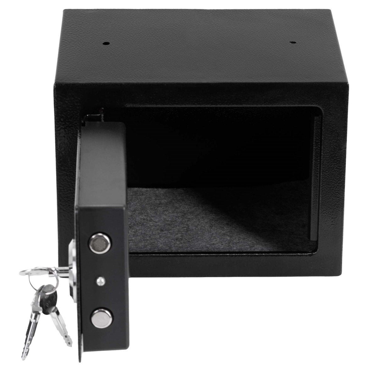 atslēgu seifs springos ha5278 ir praktisks un drošs risinājums vērtslietu, dokumentu un citu nelielu priekšmetu glabāšanai mājās. Seifs ir izgatavots no pulverkrāsota metāla melnā krāsā, tāpēc tas ir izturīgs un piemērots ikdienas lietošanai. Iekšpuse ir papildināta ar pelēku filca paklājiņu, kas palīdz pasargāt saturu no skrāpējumiem.