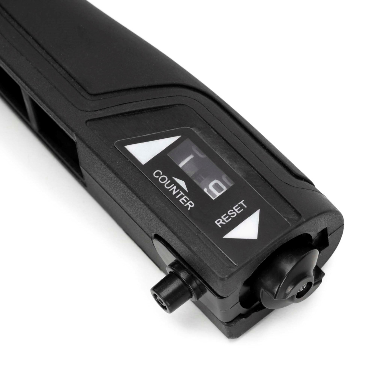 - Kustību skaitītājs parāda saspiešanas reižu skaitu – skaitītājs ar displeju, atiestatīšana ar regulēšanas pogu