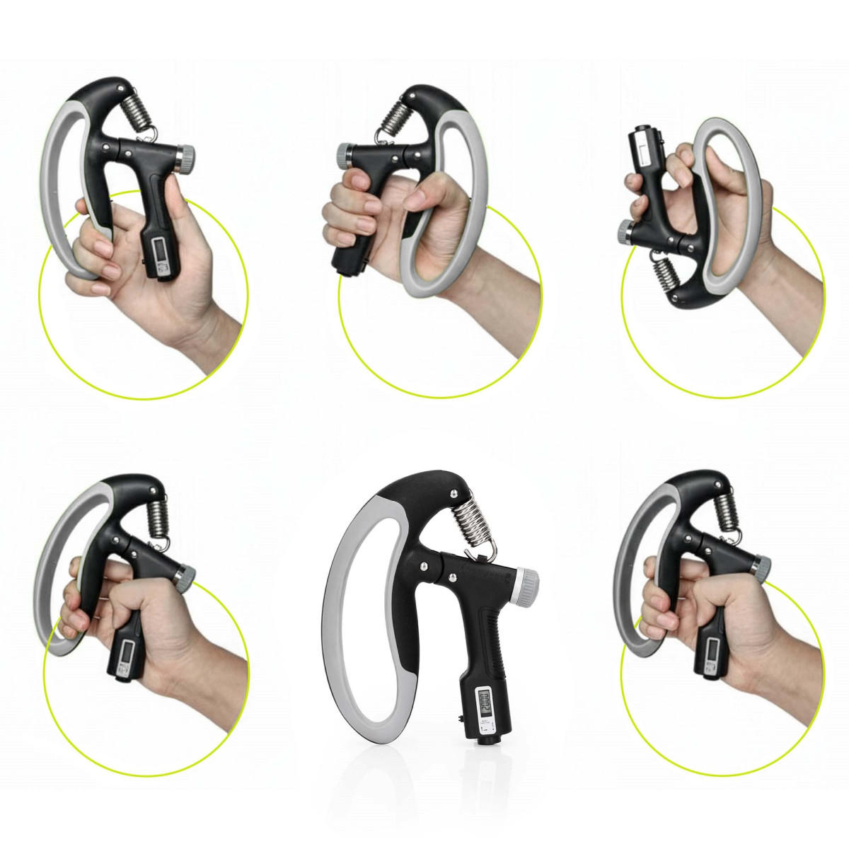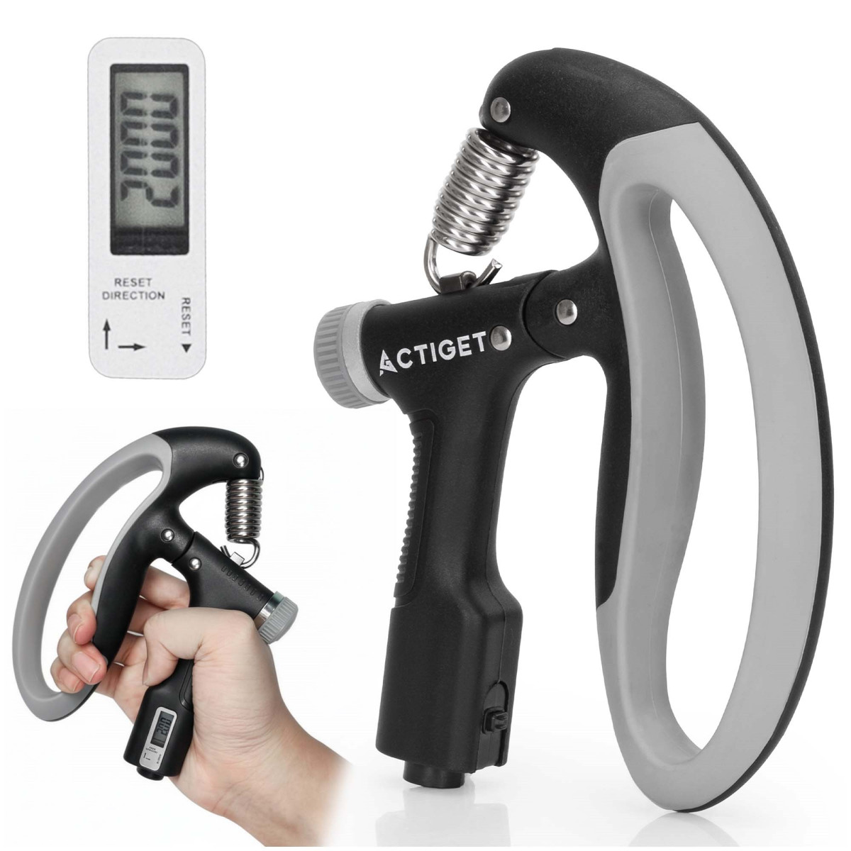 Kustību skaitītājs rāda veikto saspiešanu skaitu – skaitītājs ar šķidro kristālu displeju, atiestatāms ar pogu roktura apakšā
