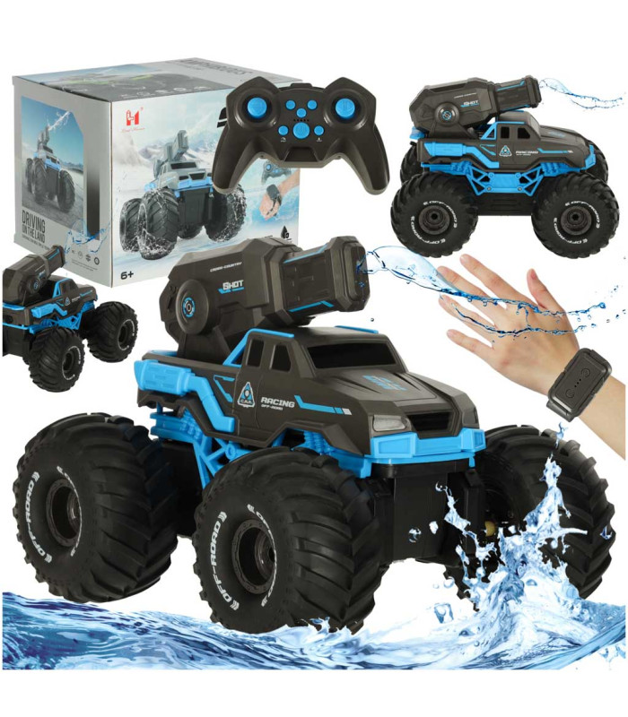 Zilais RC auto ar ūdens šaušanas funkciju: