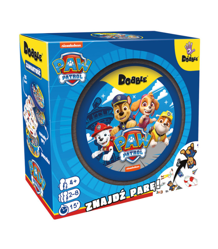 Spēle Dobble: Paw Patrol ir ātra kāršu spēle, kurā spēlētājiem pēc iespējas ātrāk jāatrod kopējais simbols uz divām kartītēm. Simboli attēlo populārā animācijas seriāla 'Paw Patrol' varoņus un priekšmetus.