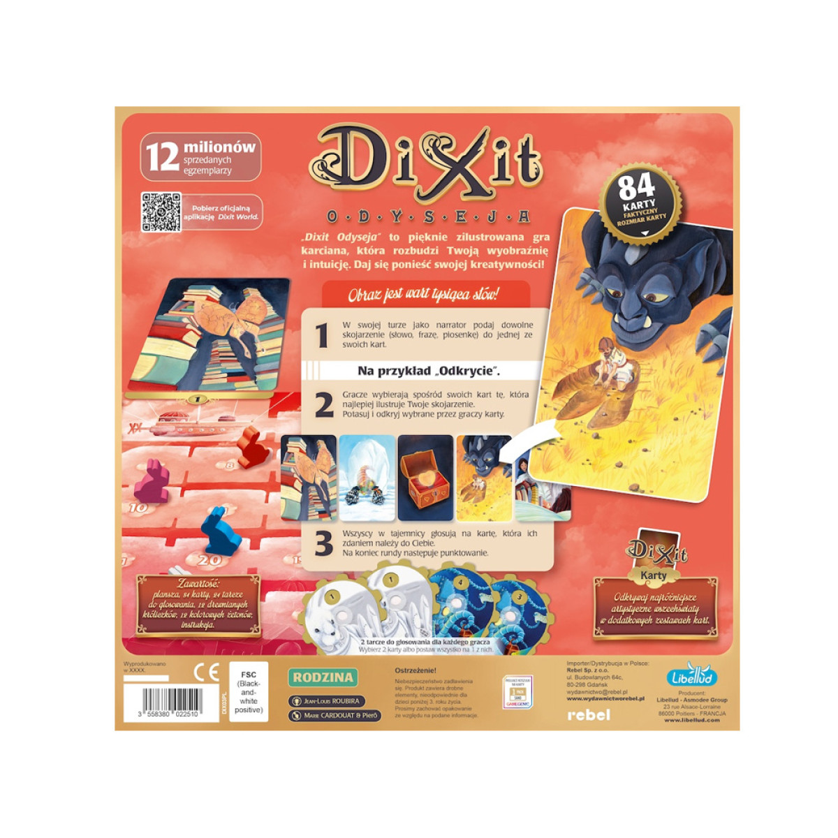 Dixit Odyseja ir stāstoša kāršu spēle, kas attīsta radošumu, iztēli un perspektīvo domāšanu. Spēlētāji izdomā un uzmin asociācijas ar skaisti ilustrētām, daudznozīmīgām kartēm, cenšoties pārsteigt citus un vienlaikus neļauties maldināšanai. Katrā kartē ir slēpti nozīmes un netipiski atsauces, kas padara katru spēli unikālu un iedvesmojošu.