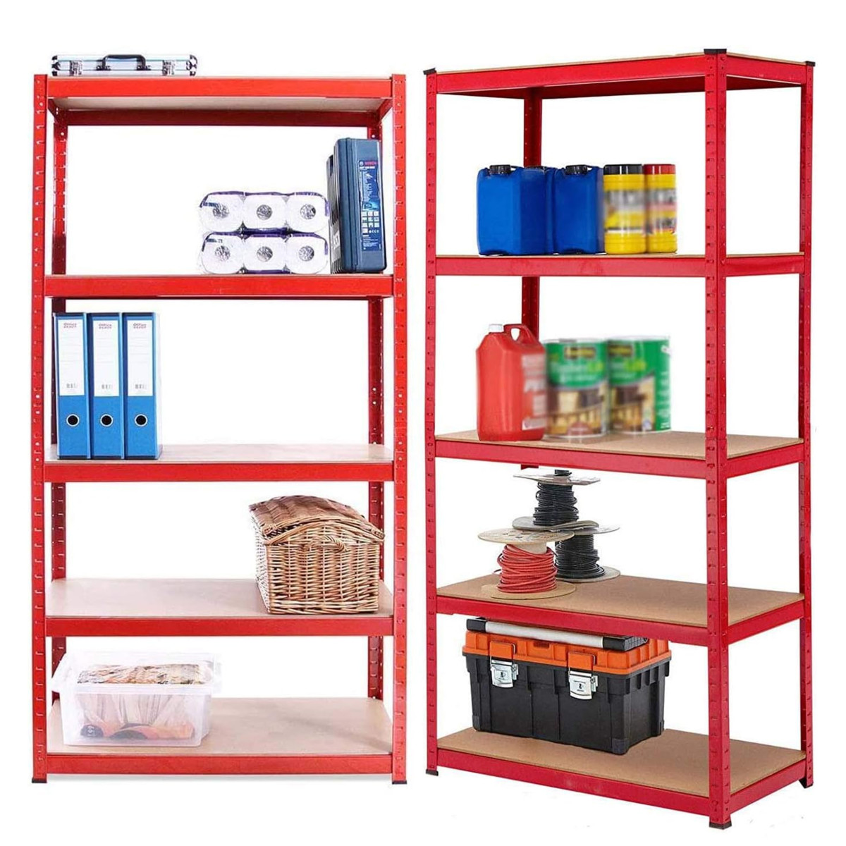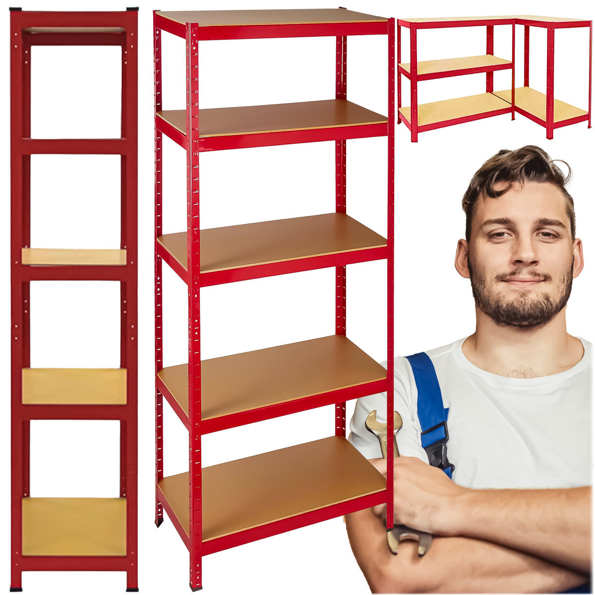 Metāla plaukts, izgatavots no tērauda, paredzēts dažādu preču glabāšanai un organizēšanai garāžās, noliktavās, ražošanas telpās, veikalos un darbnīcās. Aprīkots ar 5 stabilām plauktiem, kas ļauj kārtot preces un uzturēt kārtību darba vietā.