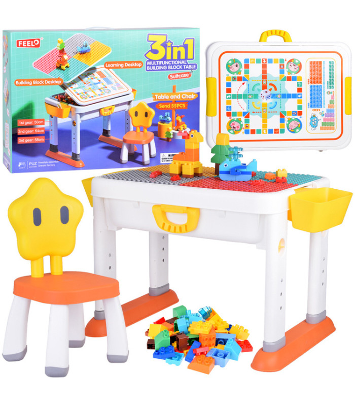 Regulējams Galdiņš 3-vienā Divpusējs Virsma Celtniecības Klucīšu Komplekts ZA5160