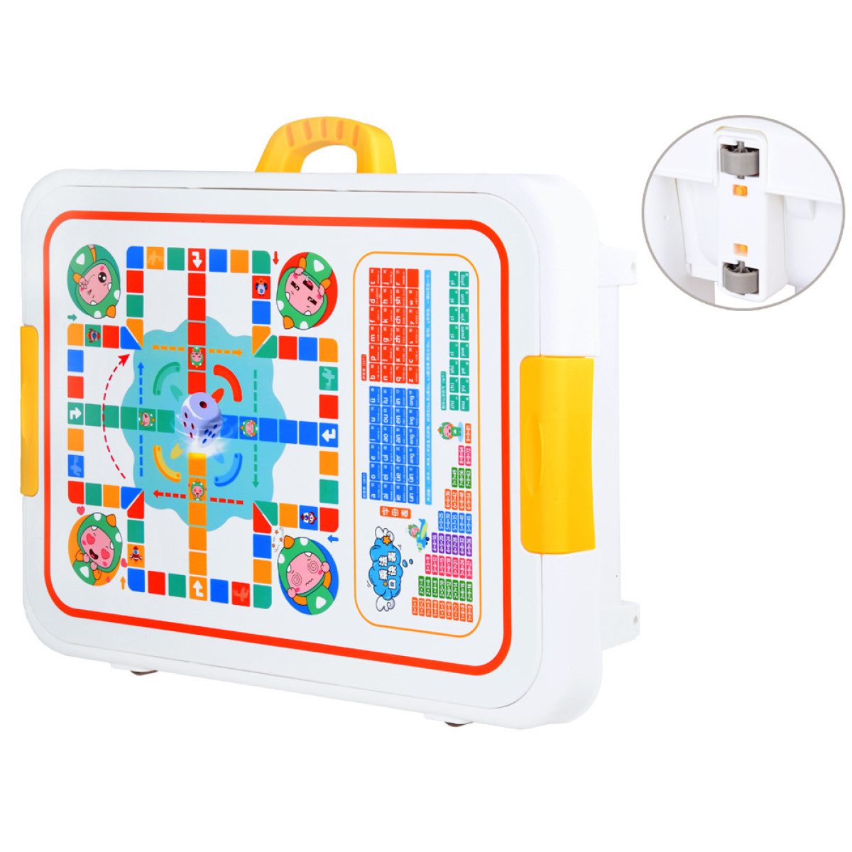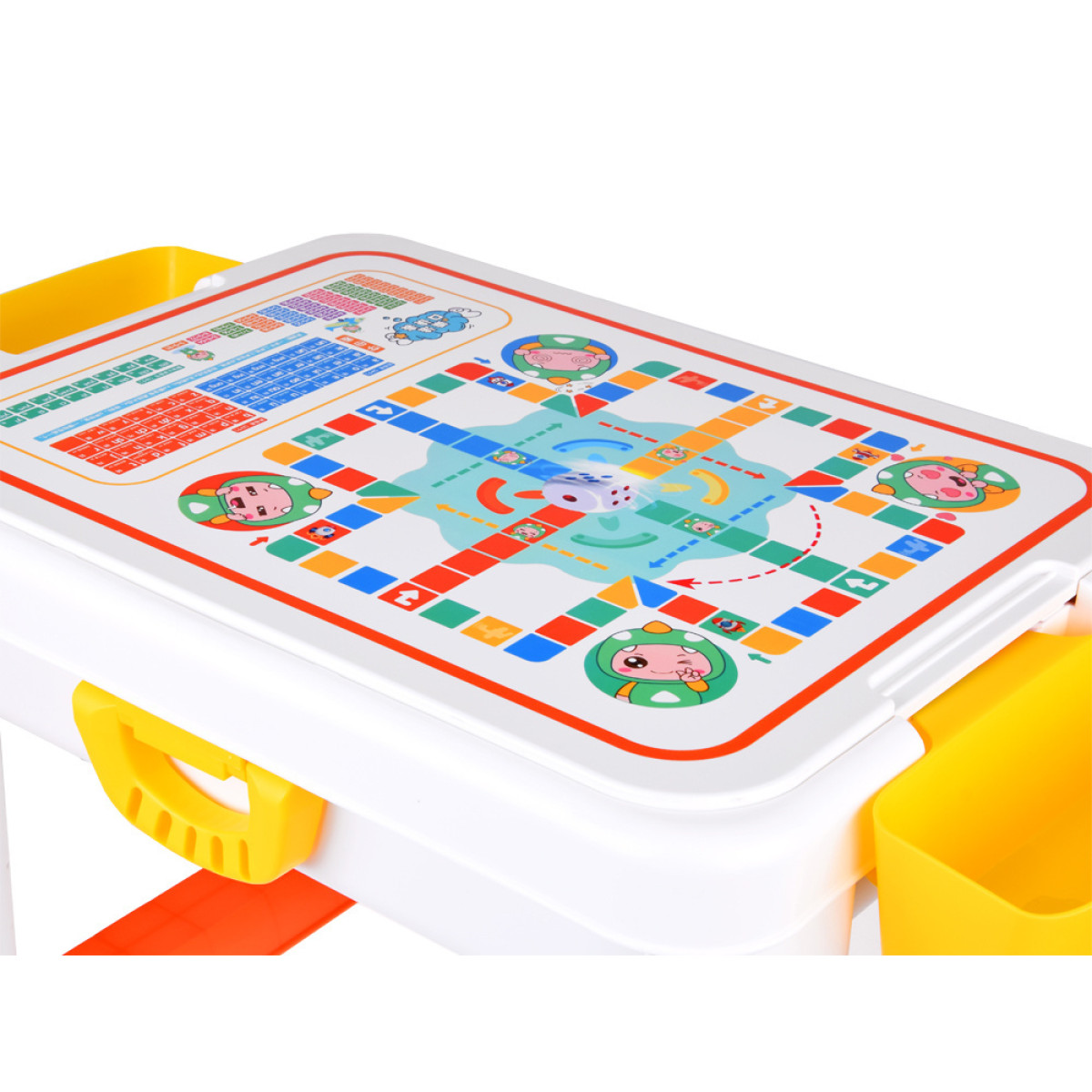 2. Spēļu un mācību galdiņš - otras puses virsma ir gluda. Uz tās ir paplašināta spēles "Ķīnieši" versija, kā arī reizrēķins. Sazinoties ar matemātiku jau no mazotnes, tajā skaitā apgūstot reizrēķinu un iepazīstoties ar matemātiskiem modeļiem, attīsta bērna asociatīvās spējas, kas vēlāk atvieglo skaitīšanu un problēmu risināšanu. Reizināmo cipari ir arī dažādu krāsu, kas vēl vairāk atvieglo iegaumēšanu.
