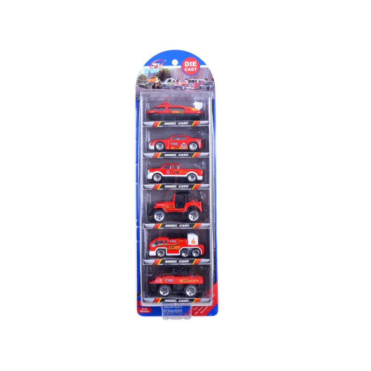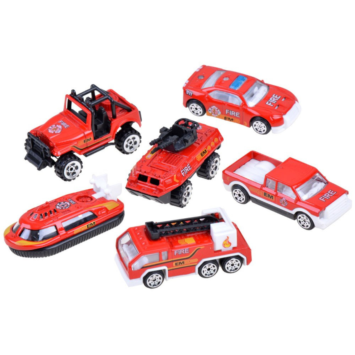 Sešu metāla ugunsdzēsēju automašīnu komplekts
