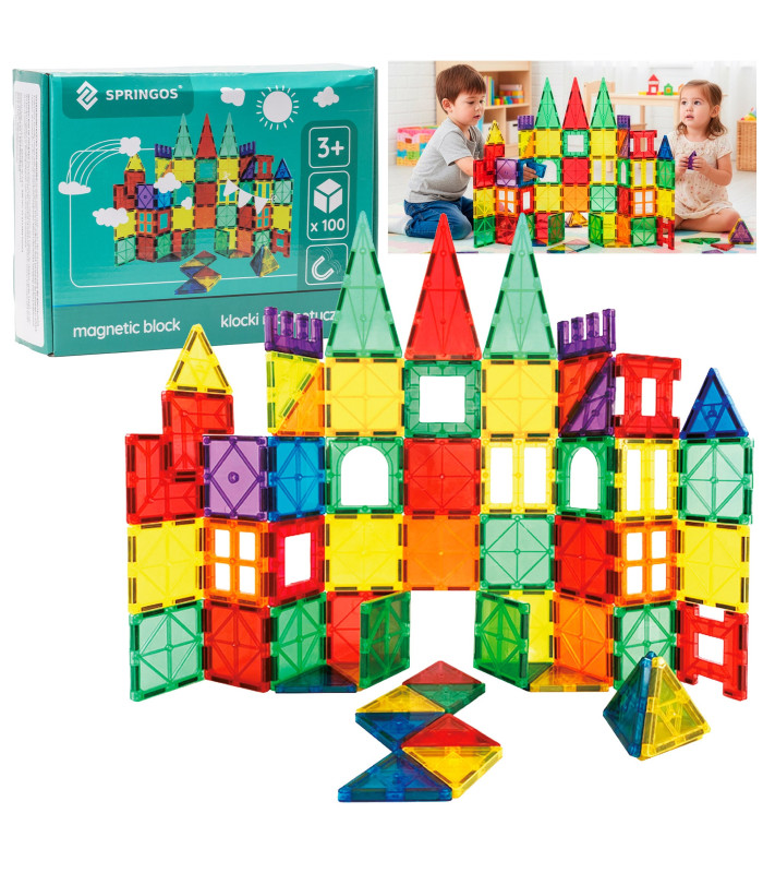 Springos KG0048 ir krāsaina magnētiskā konstruktoru spēle ar 100 magnētiskajiem klucīšiem, kas piedāvā daudzveidīgas veidošanas iespējas. Daļas viegli savienojas ar magnētu palīdzību, ļaujot veidot dažādas formas un konstrukcijas. Spēle veicina bērnu radošumu, loģisko domāšanu un smalko motoriku. Izgatavota no drošiem, sertificētiem materiāliem un piemērota bērniem no 3 gadiem.