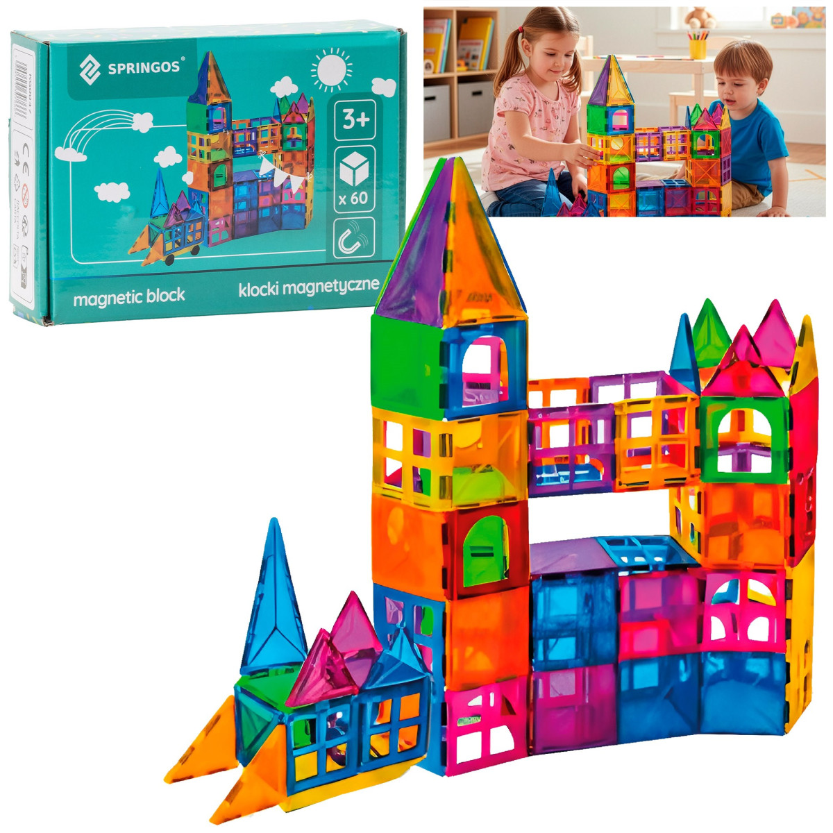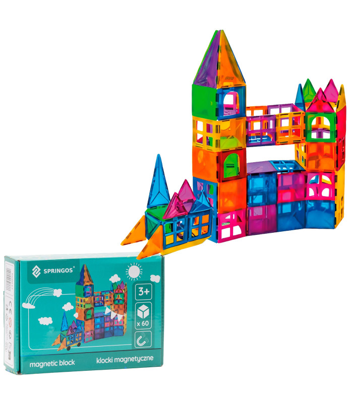 Springos KG0047 ir magnētiska bērnu konstruktoru komplekts ar 60 daļām, kas paredzēts radošai spēlēšanai un konstrukciju veidošanai. Šie magnētiskie klucīši ļauj veidot dažādas 3D formas un modeļus, veicinot loģisko domāšanu, radošumu un motorisko attīstību.