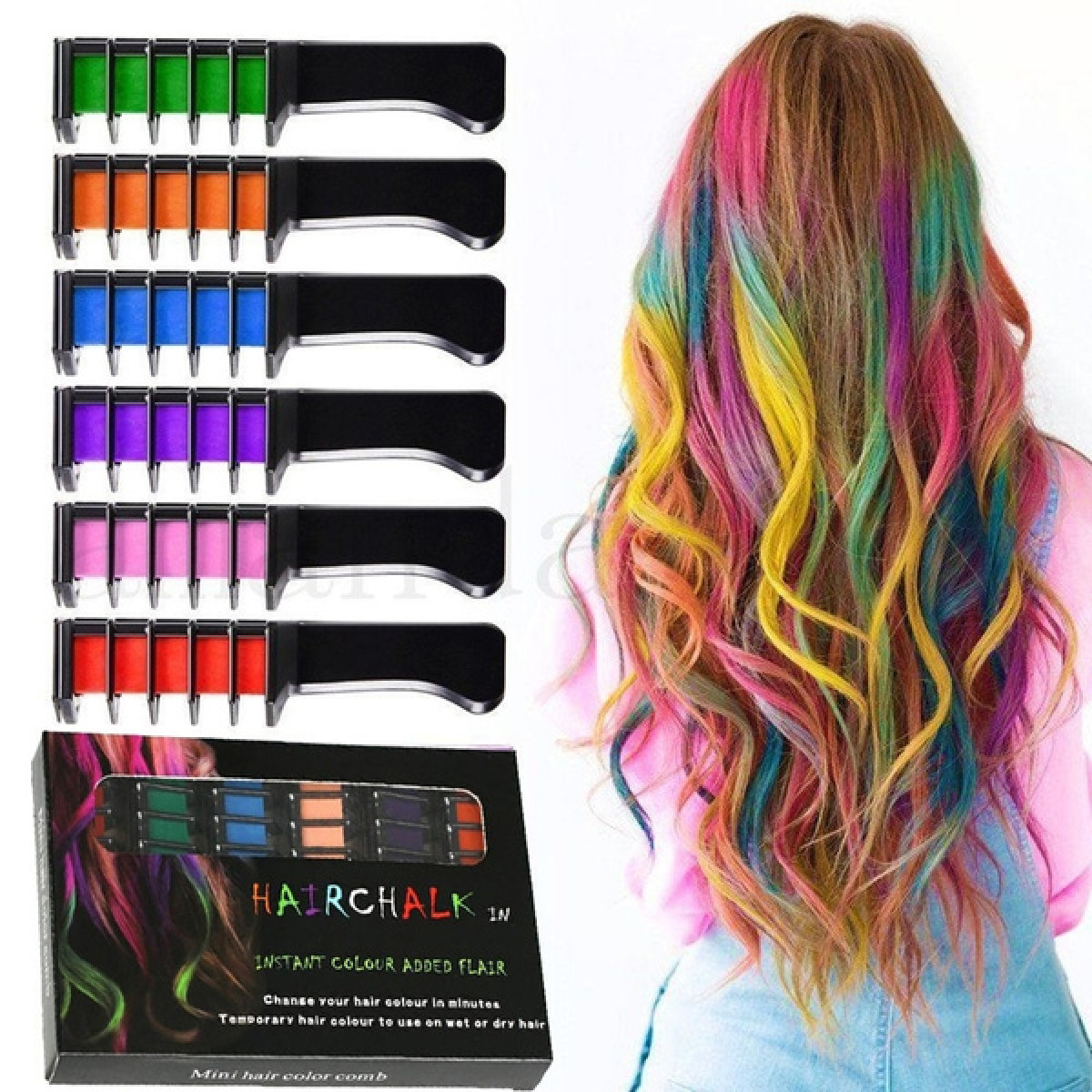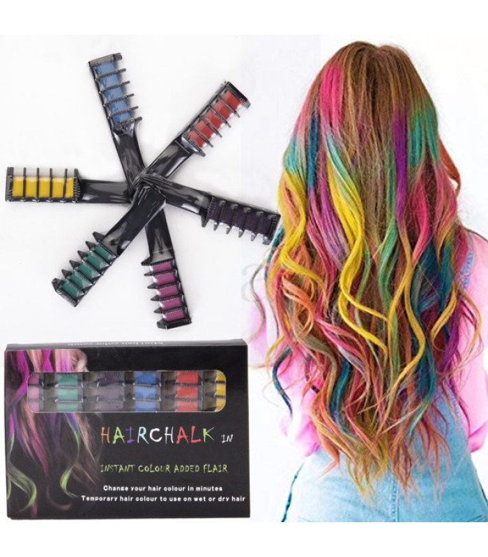 Izmēģiniet unikālās pagaidu matu krāsas – jums būs pieejamas 6 dažādu krāsu matu krāsošanas krītiņi ar ķemmēm, kas izceļas ar šādām īpašībām: