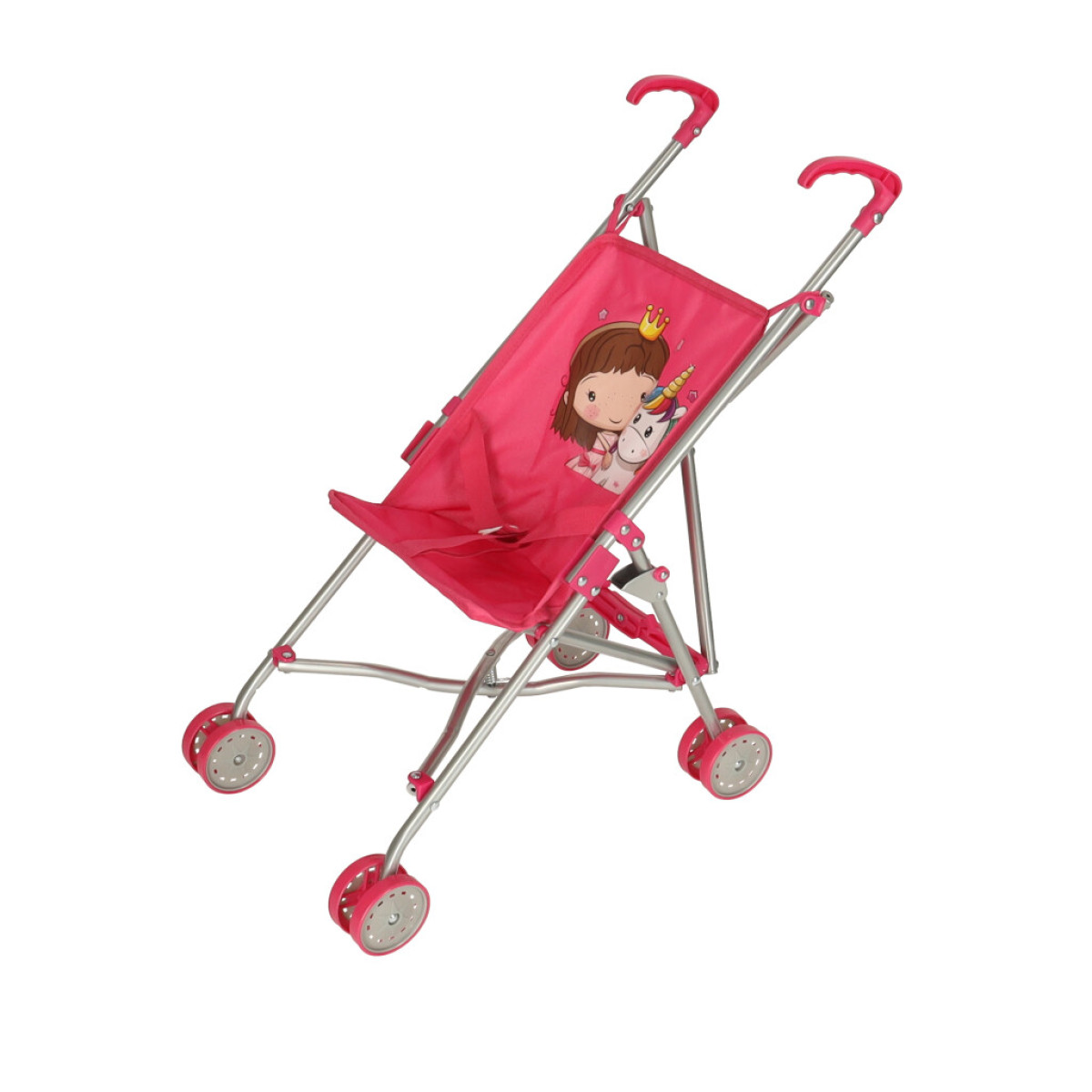 Saliekamais leļļu ratiņš Vienradzītis – rozā pastaigu rati ar drošības jostām