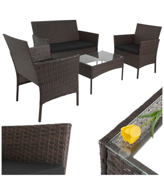 - Materiāls: rāmis: cinkots tērauds pārklāts ar ratanas; spilveni: poliesters, pildījums: kokvilna; virsma: stikls.