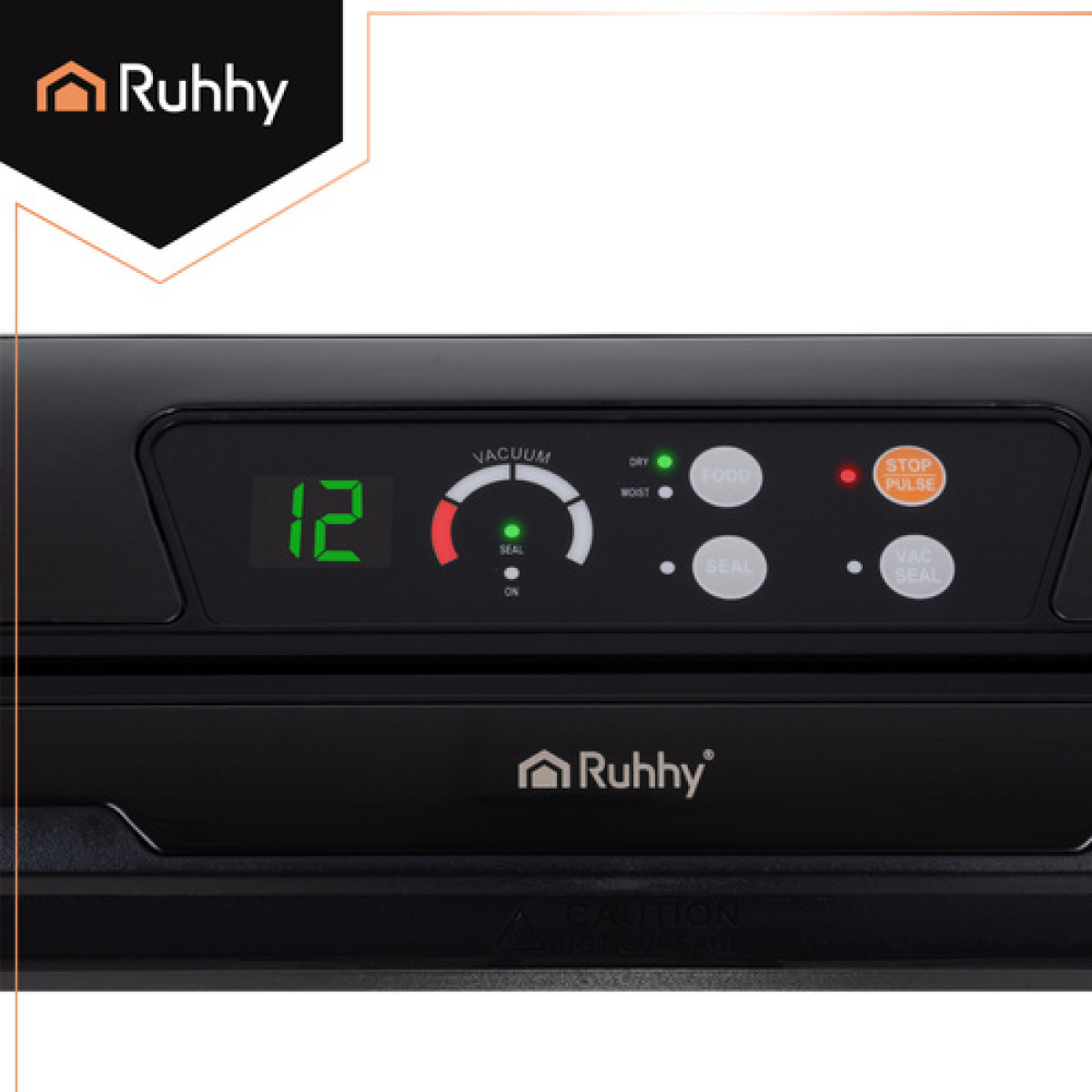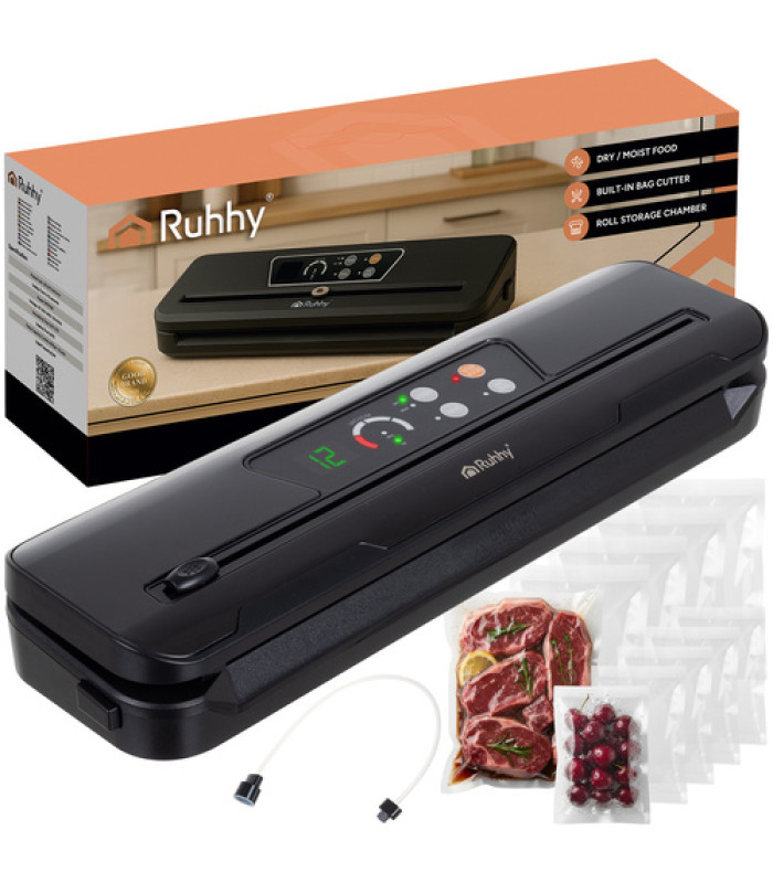 Vakuuma iepakotājs Ruhhy pārtikai - ilgāka svaiguma saglabāšana - 80 kPa ātra iepakošana - iebūvēts nazis - bezmaksas maisiņi un plēve - vienkārša lietošana