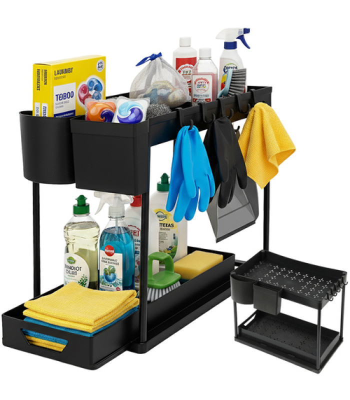 - Iegūstiet vairāk vietas virtuvē – Mūsu 2 līmeņu organizators zem izlietnes ar izvelkamu plauktu ir perfekts risinājums tiem, kas vēlas maksimāli izmantot vietu virtuvē.