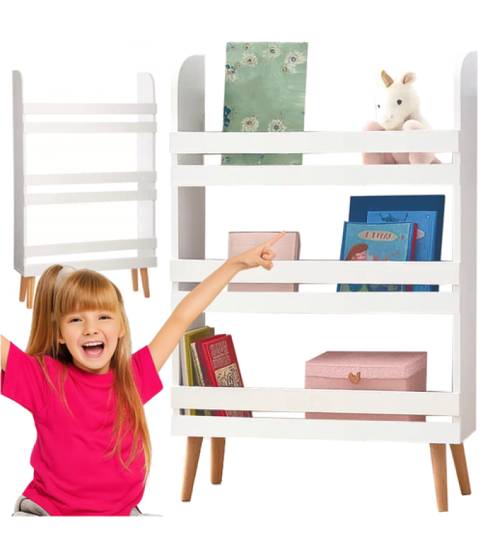 - Trīs plaši plaukti nodrošina vietu grāmatām, spēlēm, klucīšiem un mīkstajām rotaļlietām – viss ir bērna rokai tuvumā, pateicoties atvērtajai konstrukcijai, kas veicina patstāvību un kārtību.