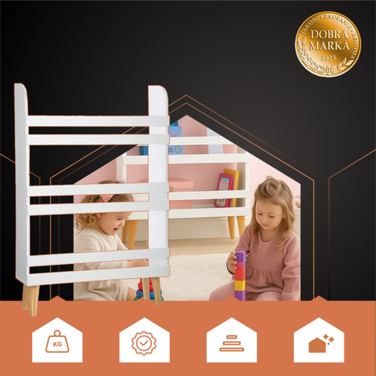 - Viegls, bet izturīgs – ideāls novietošanai pie sienas, istabas stūrī vai bērnu spēļu centrā - viens plaukts – daudzas iespējas un kārtība ikdienā.
