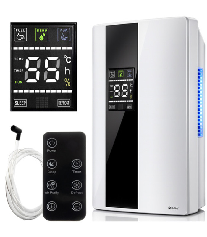 Rūpējieties par tīru, sausu un svaigu gaisu savās mājās ar 2 vienā ierīci. RUHHY apvieno gaisa mitrinātāju un attīrītāju, efektīvi noņemot lieko mitrumu un atjaunojot telpas atmosfēru, uzlabojot elpošanas kvalitāti. Kluss, energoefektīvs, ar skārienjūtīgu paneli, tālvadības pulti un gudru mitruma iestatīšanas funkciju - ideāli piemērots vannas istabai, virtuvei vai guļamistabai. Automātiski darbojas tad, kad tas ir nepieciešams.