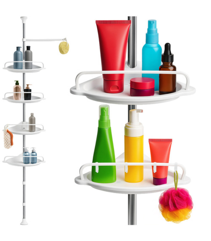 Organizē savu vannas istabu ar praktisko teleskopisko plauktu RUHHY. Regulējams augstums no 240 līdz 310 cm padara to viegli pielāgojamu jebkurai telpai, bez urbšanas un piepūles. Četri funkcionālie plaukti, āķi un pakaramie ļaus tev ērti uzglabāt kosmētiku, sūkļus, dvieļus un visus peldēšanās aksesuārus. Šis ir gudrs risinājums, kas nodrošina kārtību un ērtumu pat mazākajā vannas istabā – stilīgi un funkcionāli katru dienu.