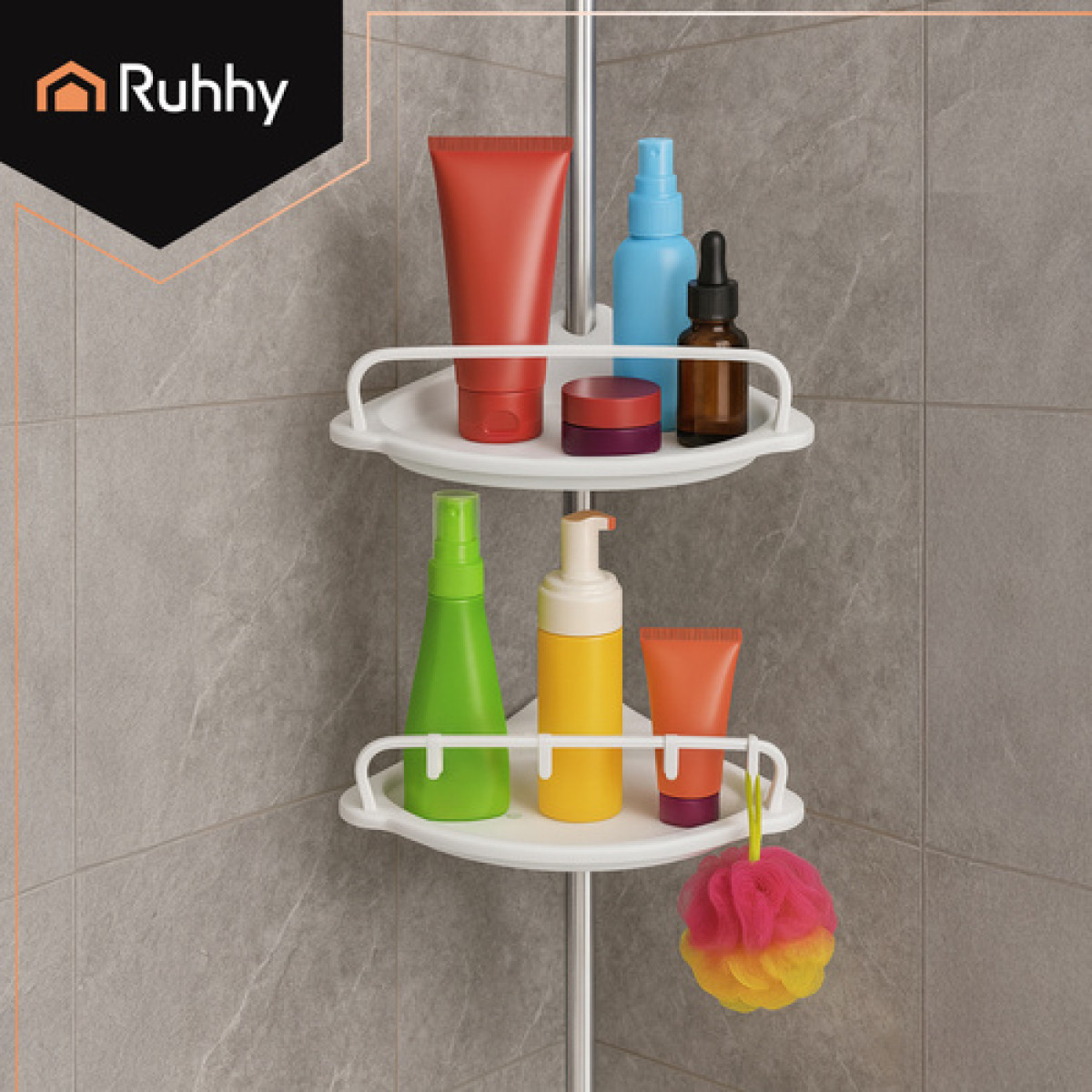 Vannas istabas plaukts dušai RUHHY stūra un teleskopisks – kārtība, ērtums un moderns stils tavā vannas istabā!