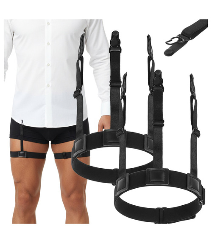 Krekla noturēšanas siksnas Ruhhy - melnas, maigas ādai, neslīdošas, elastīgas un pilnībā regulējamas. Nodrošina elegantu krekla izskatu visas dienas garumā, novēršot krokošanos un diskomfortu. Krekla noturēšanas siksnas Ruhhy stabilizē kreklu biksēs pat intensīvas kustības laikā. Diskrēts dizains paliek neredzams zem biksēm, elastīgās siksnas kustas kopā ar ķermeni. Piemērotas valkāšanai birojā, kāzās un ilgstošās sapulcēs. Vieglā konstrukcija nenoslogo kājas un nerada spiedienu. Klipsi ir izstrādāti tā, lai nesabojātu krekla audumu. Melna krāsa der jebkurai stilizācijai.