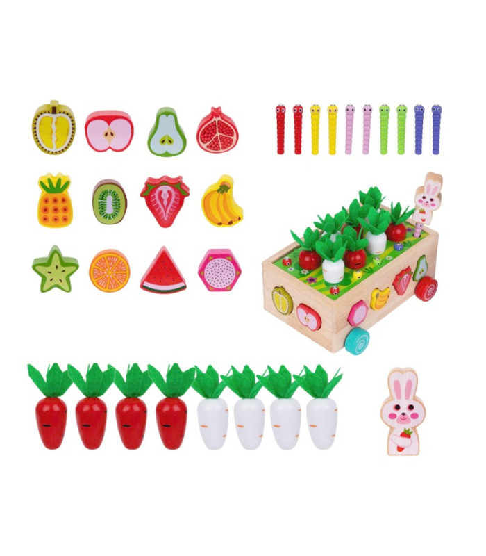 Rūšiuotojas Montessori drewniany wózek złap robaczka marchewki układanka ZA5903