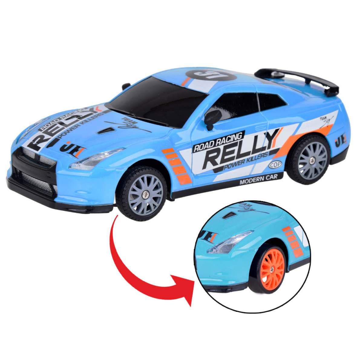 Automobilis valdomas 2,4 GHz nuotolinio valdymo pultu su įmontuota antena, leidžiančia visiškai kontroliuoti automobilį: važiavimą pirmyn, atgal bei sukimu į dešinę ir kairę. Rinkinyje yra papildomi atsarginiai ratai ir kūgiai, leidžiantys kurti nuostabius lenktynių trasas vairavimui arba driftui.