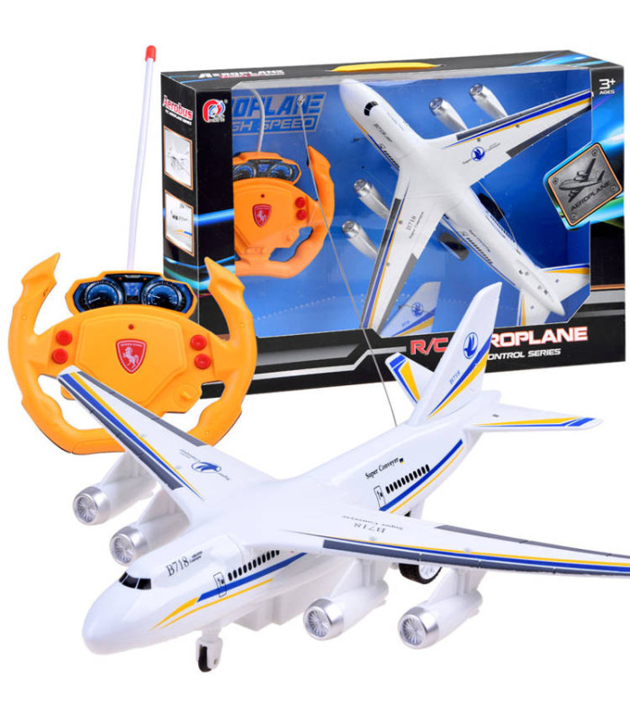 Tālvadības pasažieru lidmašīna ar pulti ir ideāls piedāvājums ikvienam mazam aviācijas fanam. Lidmašīna tiek vadīta ar pulti, kas izskatās kā stūre, un var braukt uz priekšu, atpakaļ, pa labi un pa kreisi. Spilgti apgaismoti efekti padara spēli vēl aizraujošāku.