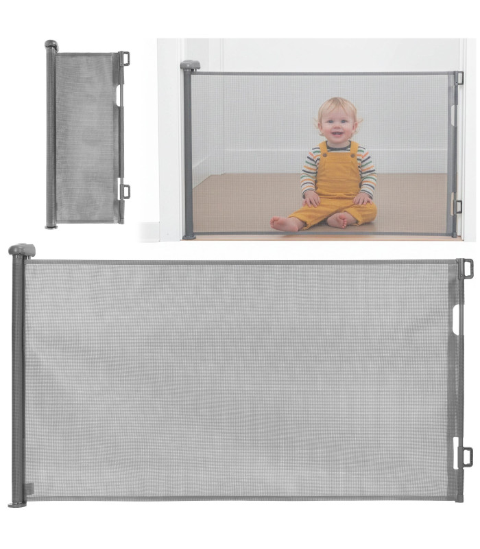 Drošības barjera kāpnēm 80 cm, rullo žalūzijas durvīm, aizsargājošas, pelēkas