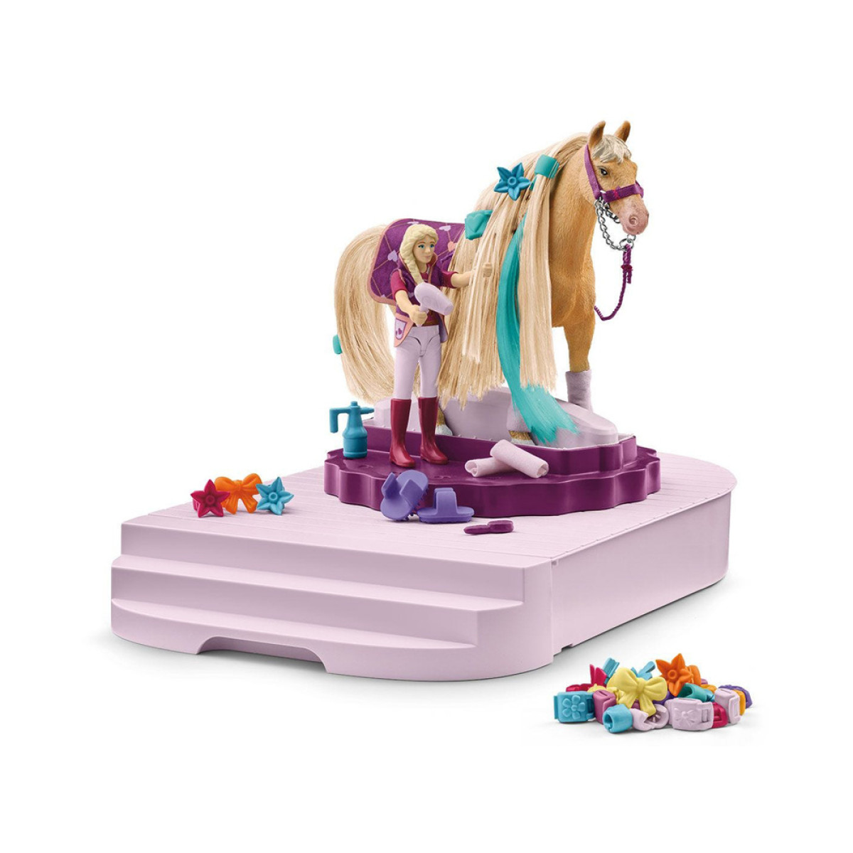 Schleich rotējošā stacija zirgu kopšanai no Horse Club Sofia's Beauties sērijas ir lieliska dāvana katrai šī brīnišķīgā dzīvnieka cienītājai. Daudzas meitenes sapņo par savu zirgu ar skaistu, garu krēpju, bet šis sapnis bieži ir grūti sasniedzams. Ar šo komplektu un nedaudz iztēles bērns var justies kā zirga īpašnieks un rūpēties par savu zirgu.