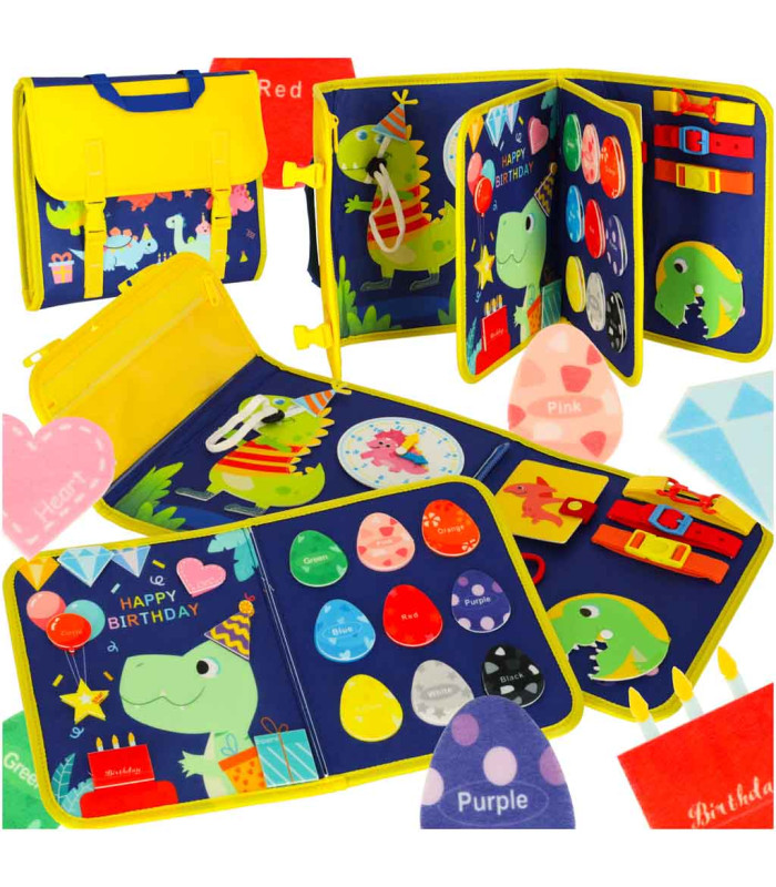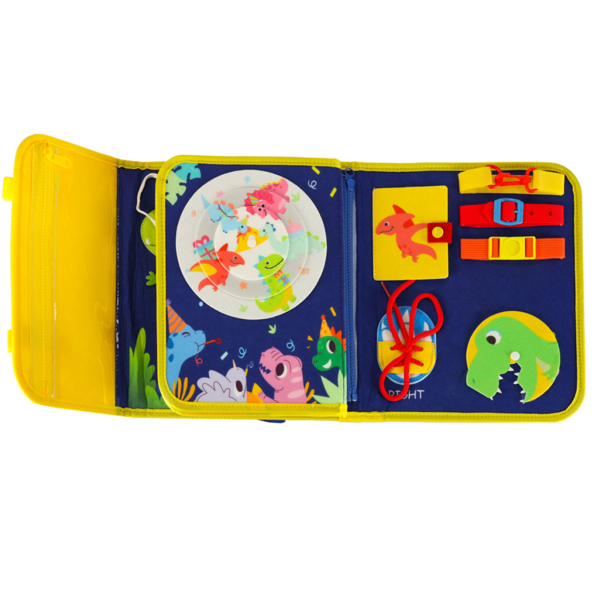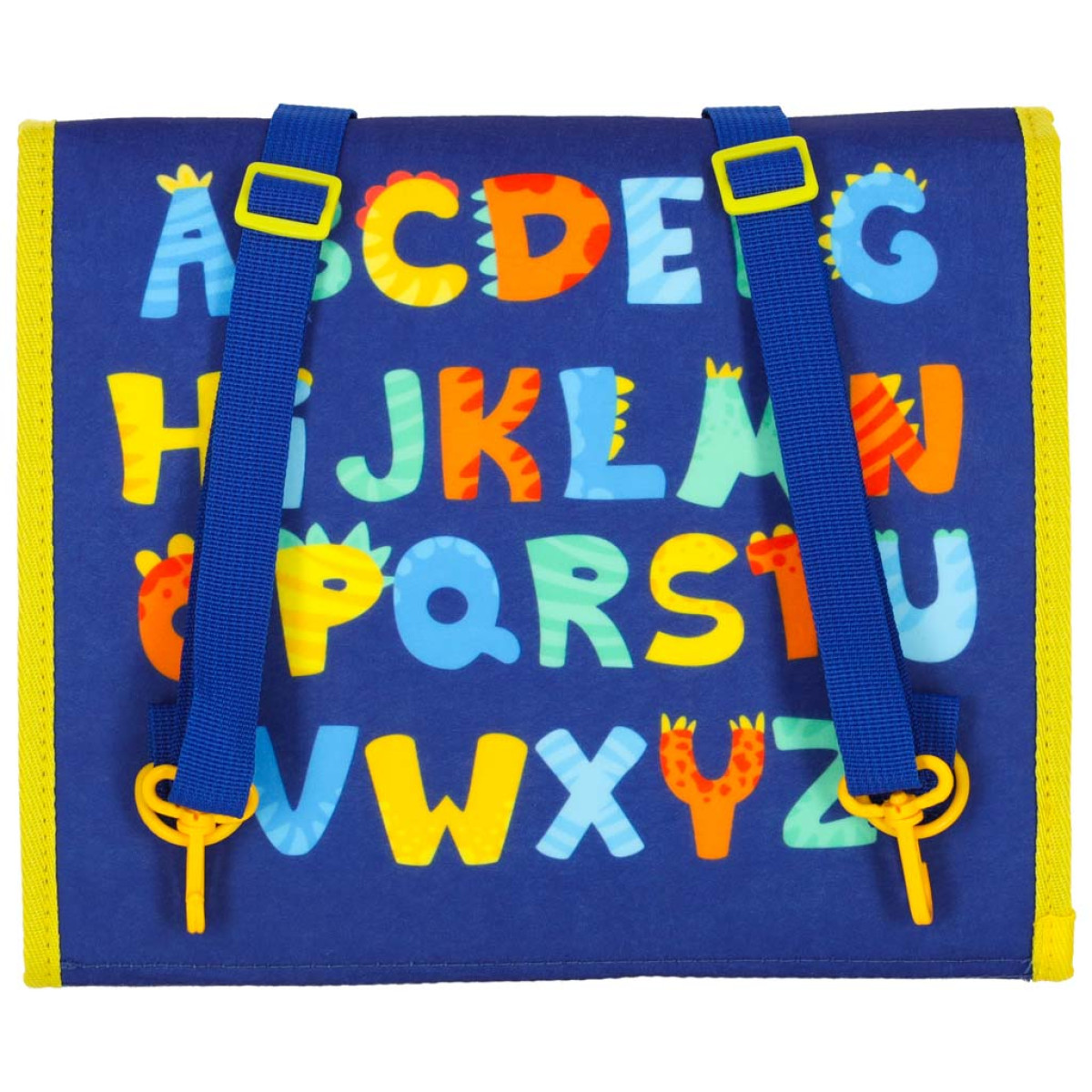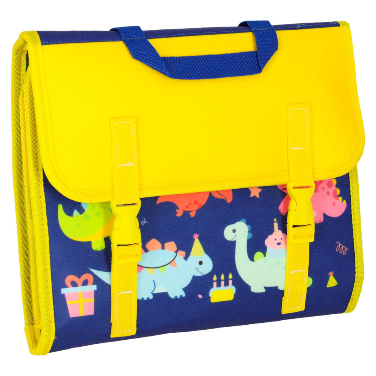 Krāsains filca dēlis ar dinozauriem izskatās kā klasisks skolas mugursoma. Ergonomiska forma un lences nodrošina ērtu transportēšanu uz skolu vai bērnudārzu. Izmantojot dēli, iespējams ērti apgūt un nostiprināt zināšanas spēlējoties.