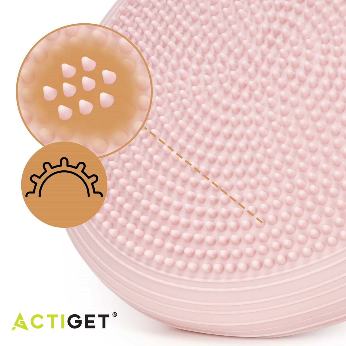 Produktam ir Actiget® logotips. Spilvenam ir masējoša un stimulējoša virsma ar gariem izciļņiem.