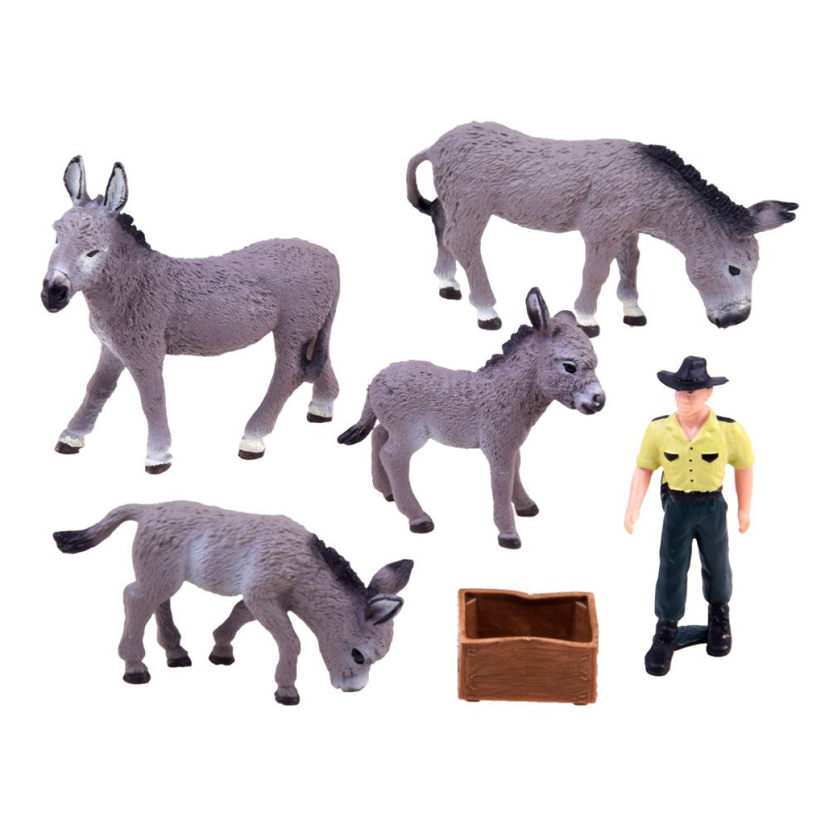 - 2 jauni ēzeļi: burvīgi, mazi ēzeļi, kas apburs bērnus ar savu izskatu. To maigums un skaistums padara tos par ideāliem rotaļu biedriem.