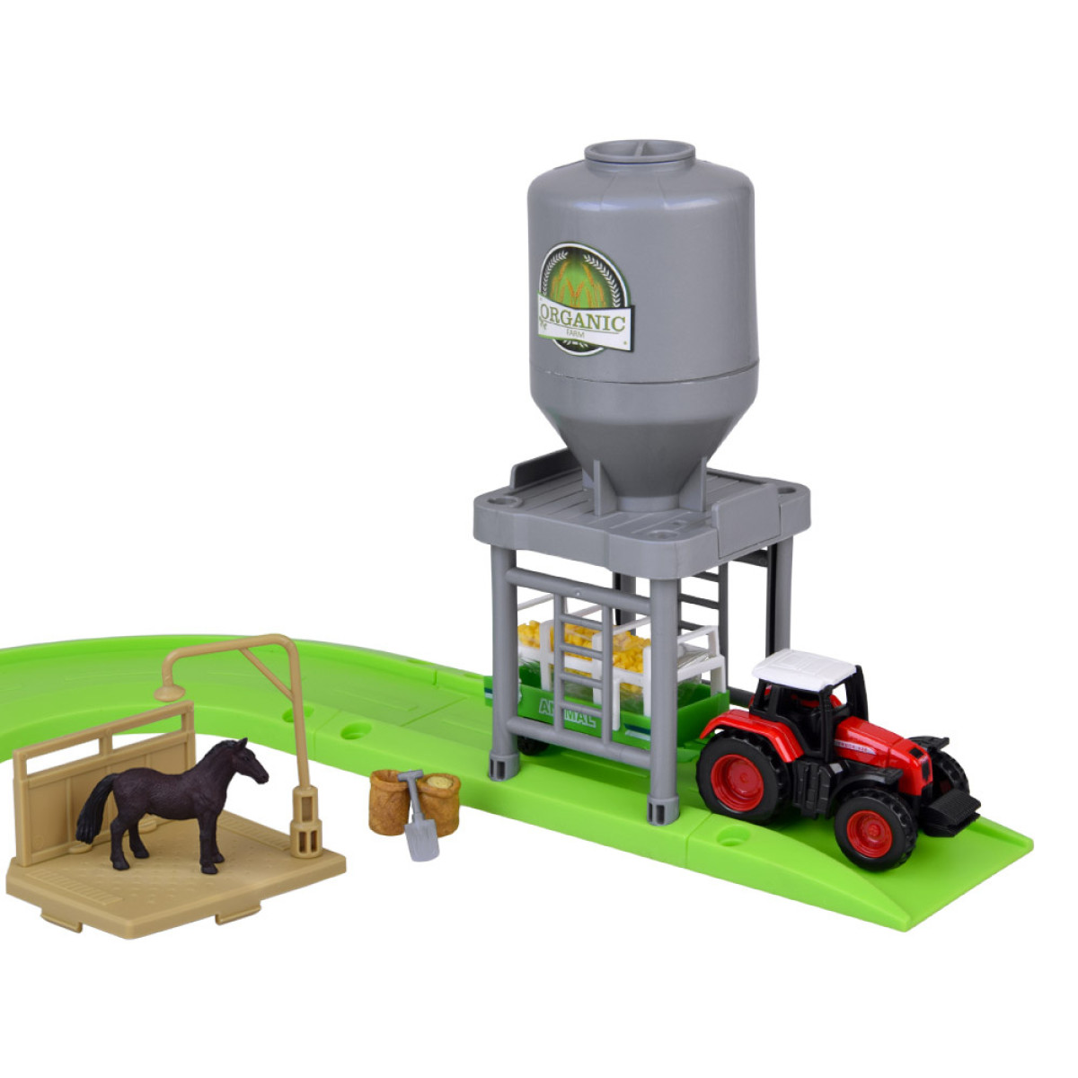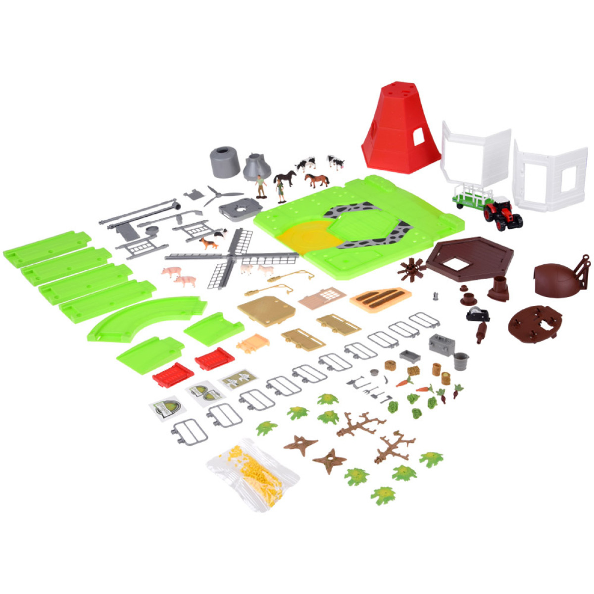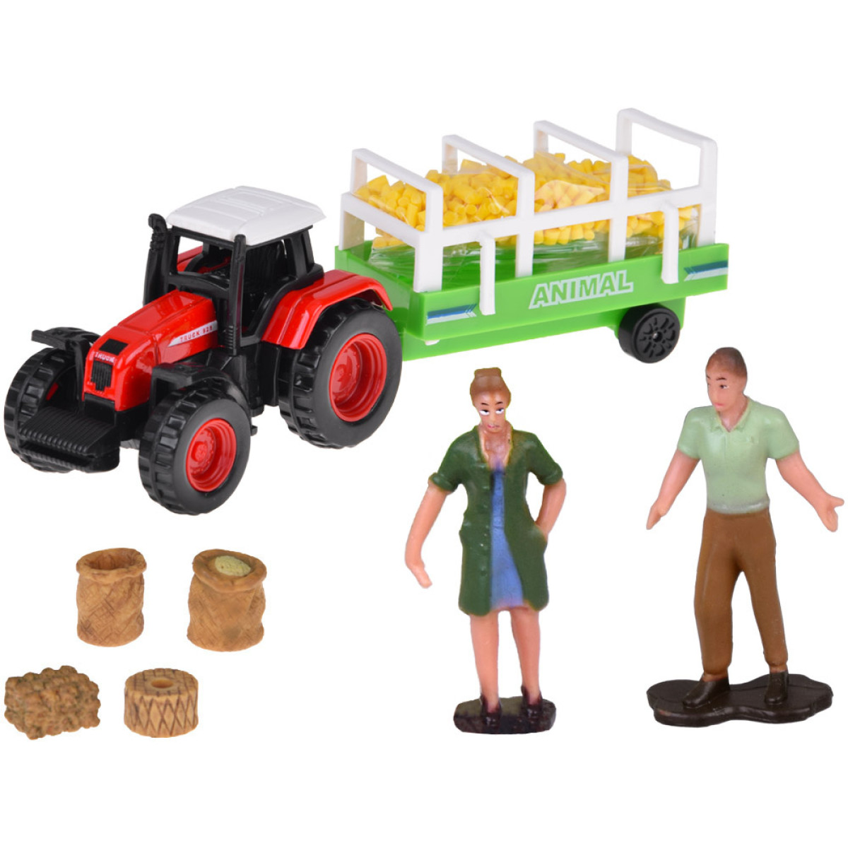 Bet tas vēl nav viss! Komplekts ietver traktoru ar piekabi, dzīvnieku un saimnieku figūras, kā arī papildu saimniecības aprīkojumu. Pateicoties šim bagātīgi aprīkotajam komplektam, varat atveidot dažādas ainas un izdomāt dažādus stāstus.