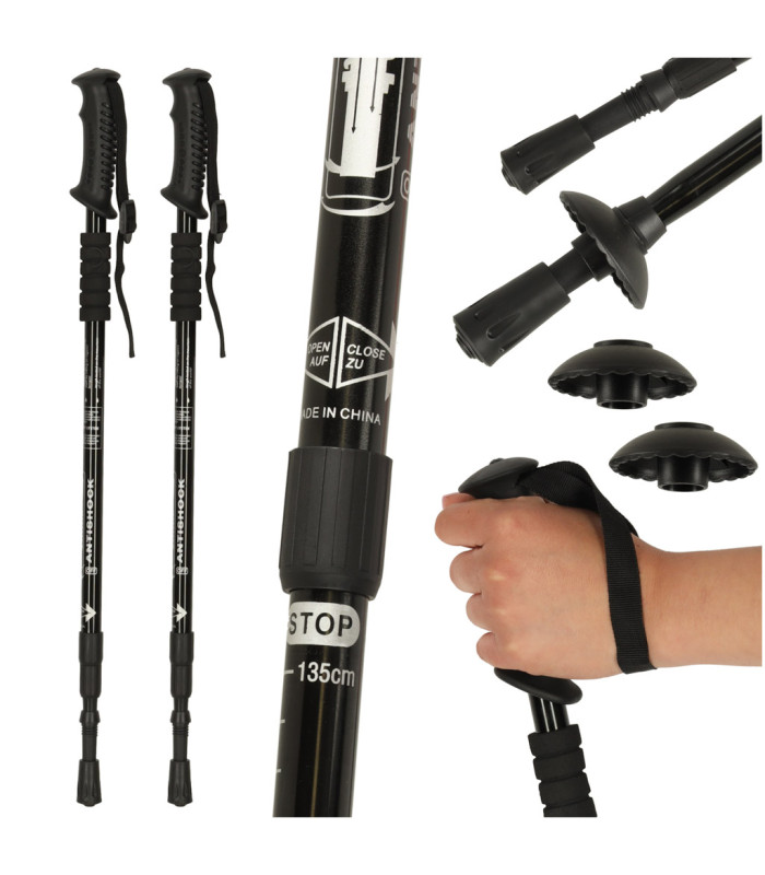 Nūjošana - regulējamas alumīnija nūjas, 2 gabali, melnas