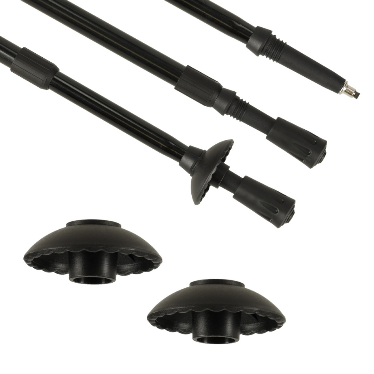 Viegla nūju pielāgošana segumam ar galu maiņu - tas ļauj pielāgot nūjas dažādiem segumiem: asfaltam, smiltīm, meža takām vai sniegam. Universālie uzgaļi nodrošina, ka nūjas var izmantot visu gadu, jebkuros laika apstākļos.