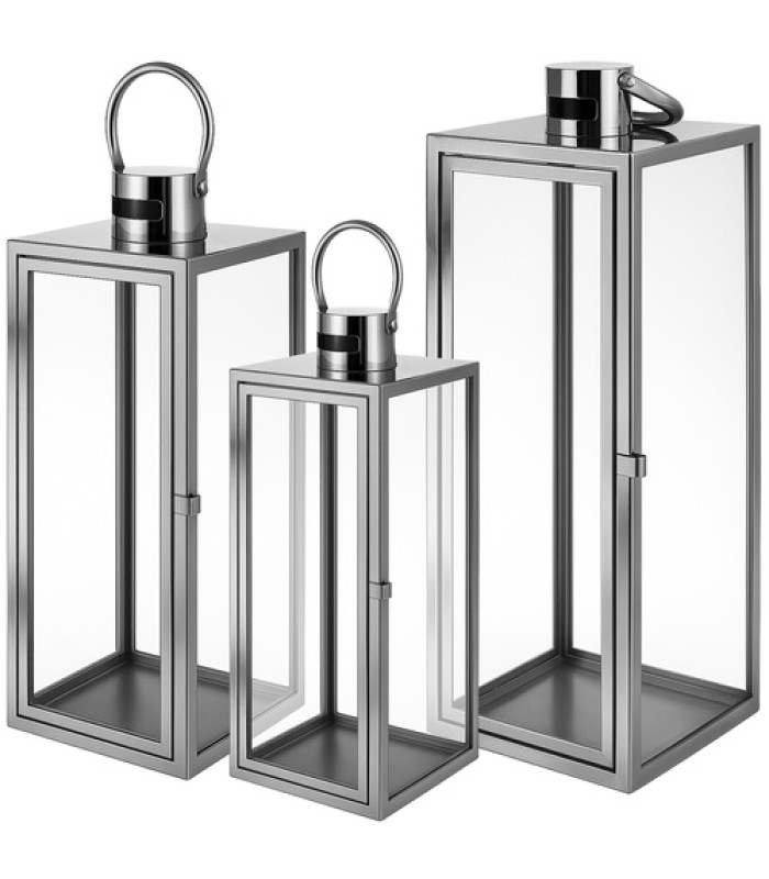 Komplekts ar trim elegantām sudraba krāsas lampiņām, kas izgatavotas no izturīga stikla un nerūsējoša tērauda. Ideāli piemērotas, lai radītu atmosfēru mājās, dārzā, terasē vai svinībās. Dažādi izmēri ļauj veidot iespaidīgas kompozīcijas, un rokturis un atveramās durtiņas nodrošina ērtu lietošanu. Piemērotas LED svecēm, tealight svecītēm un floristikai – jebkurai svētku reizē.