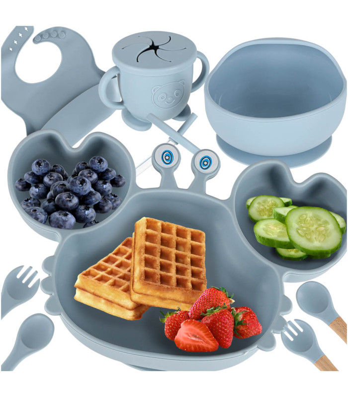 Pirmie bērna ēdieni ir īpašs mirklis, un labi izvēlēti aksesuāri var to padarīt par priecīgu pieredzi. Tāpēc mēs radījām mūsu silikona traukus bērniem - drošus, funkcionālus un izstrādātus, domājot par ērtībām gan bērnam, gan vecākiem. Silikona trauku komplekts krabja formā, kas sastāv no 9 elementiem, ir pilnīgs komplekts, kas atbalsta patstāvīgu ēšanu un padara ikdienas bērnu barošanu vieglāku.