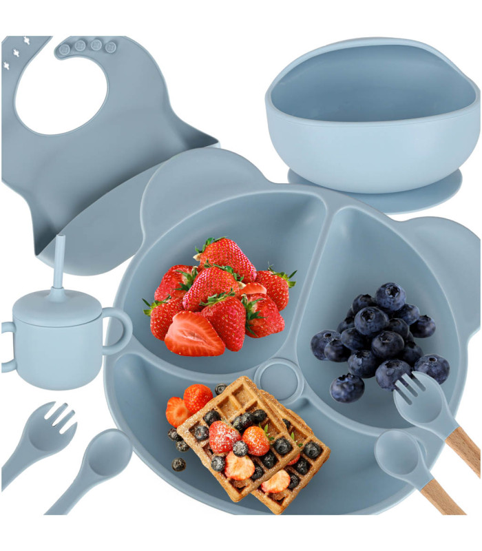 Silikona trauki bērniem, 8 daļu komplekts, zils