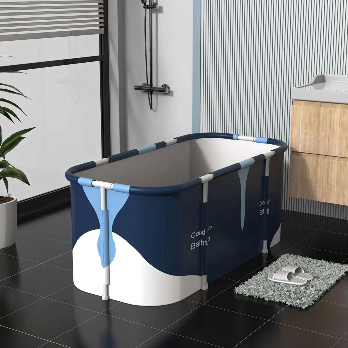 Saliekamā XXL vanna ir ideāls risinājums ikvienam, kurš sapņo par relaksējošu vannu mazā vannas istabā. Pateicoties 6 slāņu termiskajai izolācijai, ūdens ilgi saglabājas silts, un ātrā salikšanas sistēma ļauj vannu uzglabāt pat zem gultas.