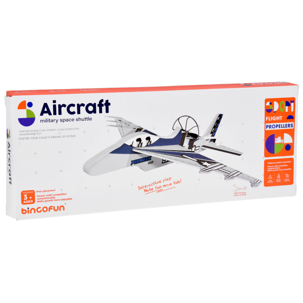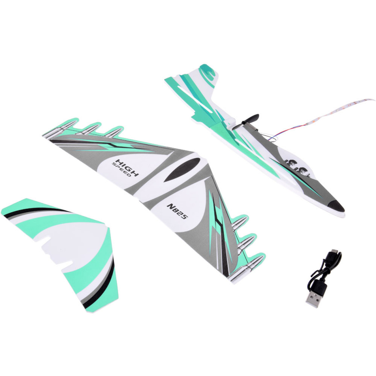 Komplektā ietilpst: lidmašīnas korpuss, spārns, horizontālais stabilizators, USB kabelis.