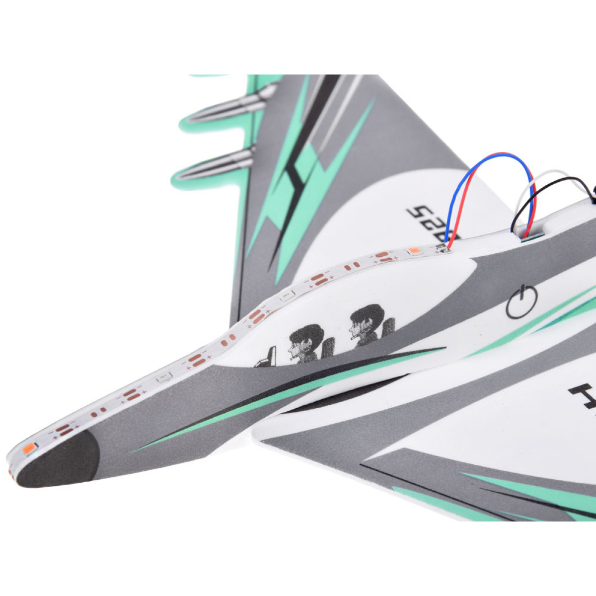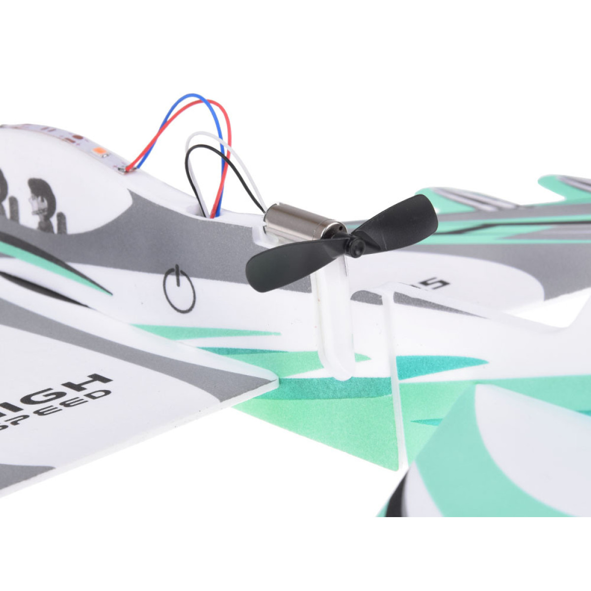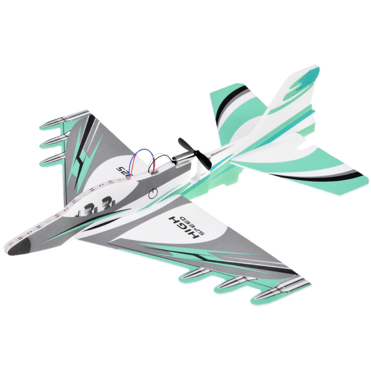 Lidmašīna ir izgatavota no putu materiāla, un platie spārni nodrošina pietiekamu celtspēju, kas nodrošina vieglu paceļšanos gaisā. Lidmašīna ar interesantu krāsojumu izskatās neparasti, un mirgojošais LED apgaismojums sniedz lielisku vizuālu efektu, īpaši vakarā.