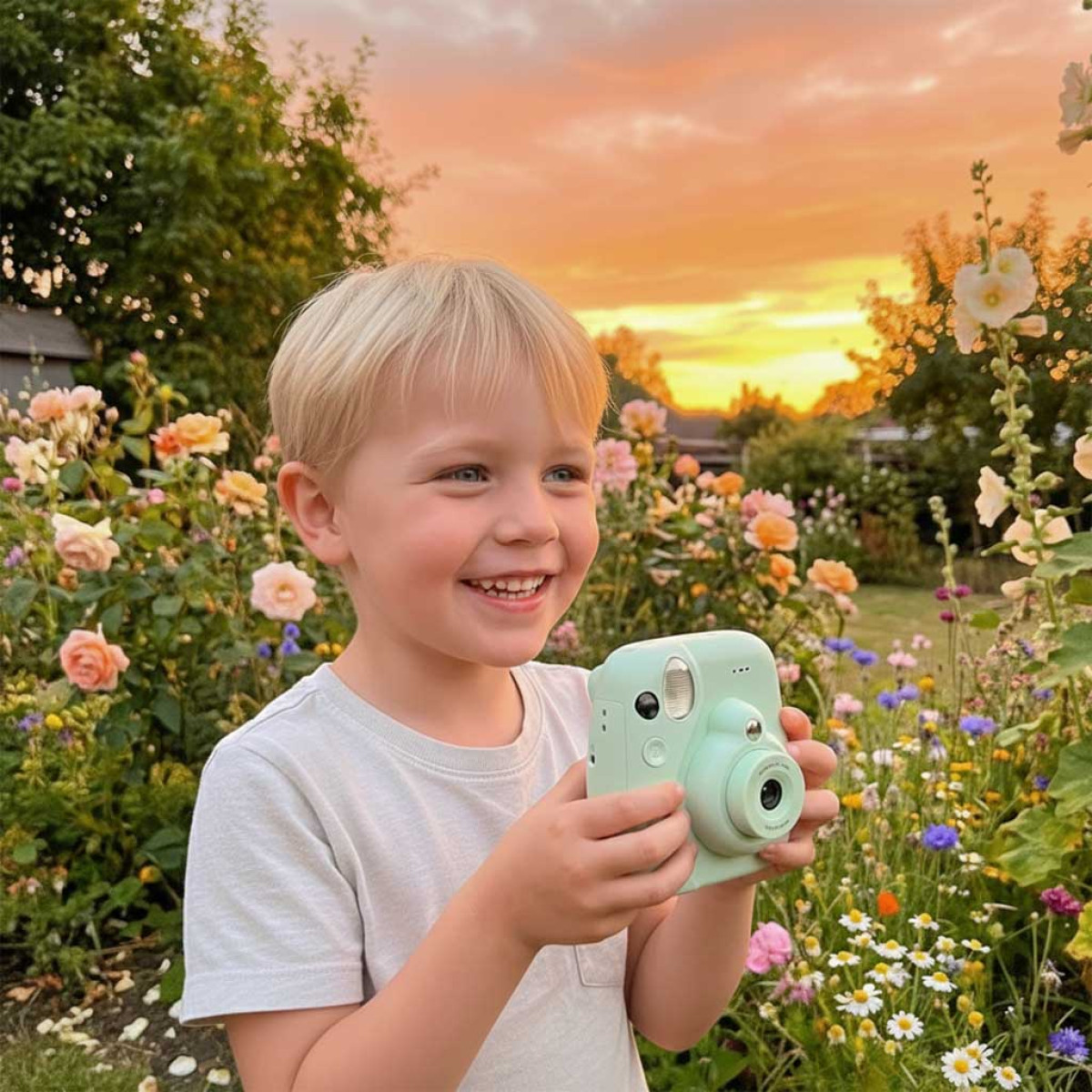 Bērnu digitālā tūlītējā kamera 16x zaļa ar aksesuāriem