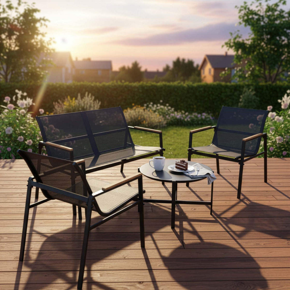 šis dārza mēbeļu komplekts ir lieliska izvēle tiem, kuri meklē izturīgas, ērtas un vizuāli pievilcīgas āra mēbeles ikdienas lietošanai.